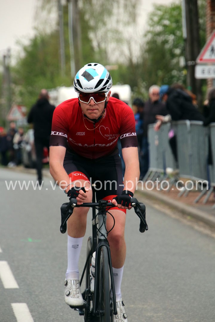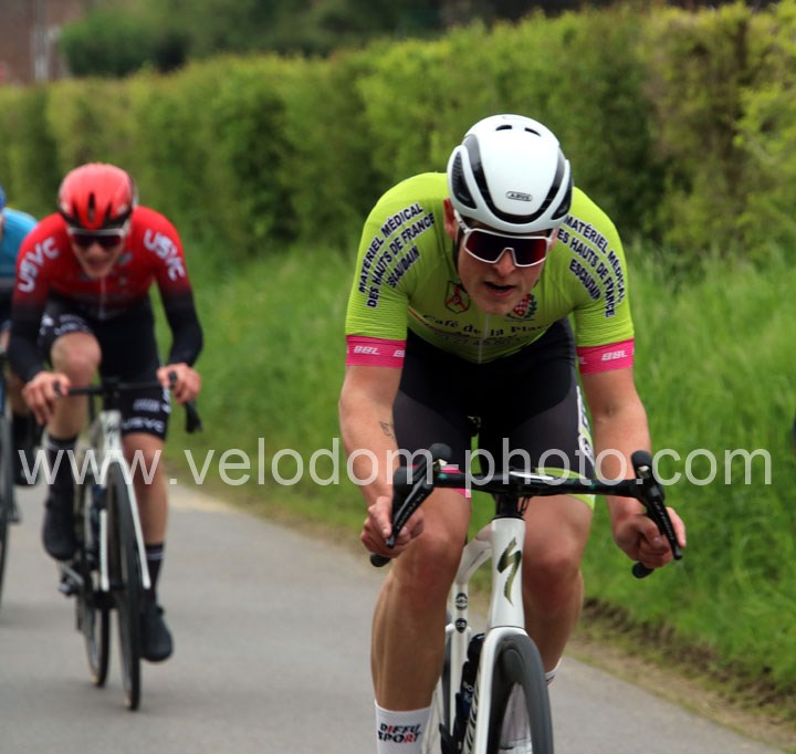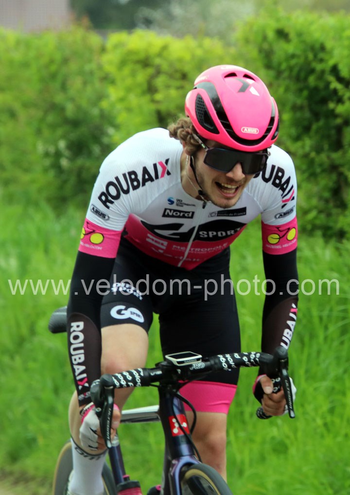 C’est d’ailleurs lui qui va prendre seul les commandes de la course dans le 4ème tour. Une position qu’il ne quittera plus jusque l’arrivée. Au fil des tours, il va creuser un bel écart même si derrière un groupe de contre va se former avec Martin Dziewiatka ( La Chérizienne ), Alexandre Massin ( ESEG Douai ), Alban Chutsch ( Gazelec Douai ) et Louis Collaintier ( ESEG Douai ).