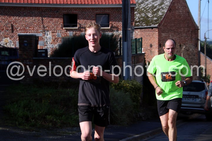 Le départ donné, la course était belle et bien lancée avec déjà un Rémi Damageux ( ESA 59 Leval ) aux commandes qui passait en tête à l’endroit du lavoir. Un peu plus loin, on retrouvait Louis Bourgeault en poursuite et bien décidé à jouer son va-tout.