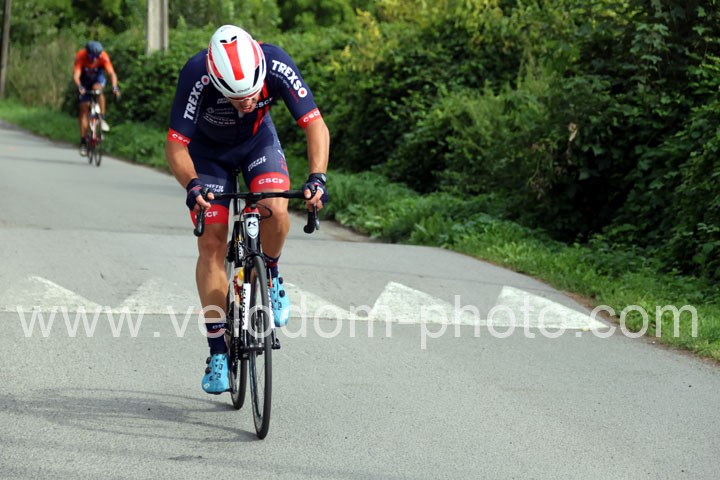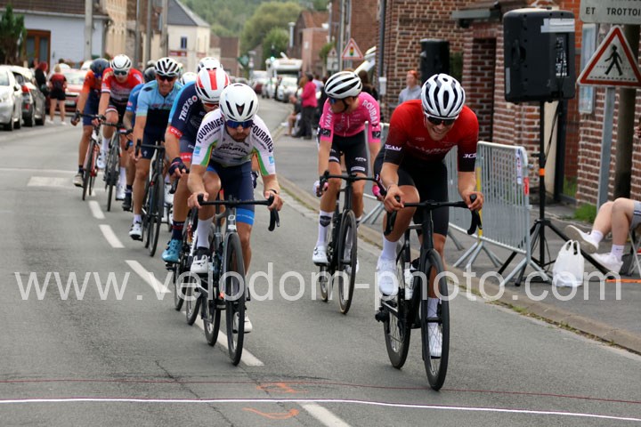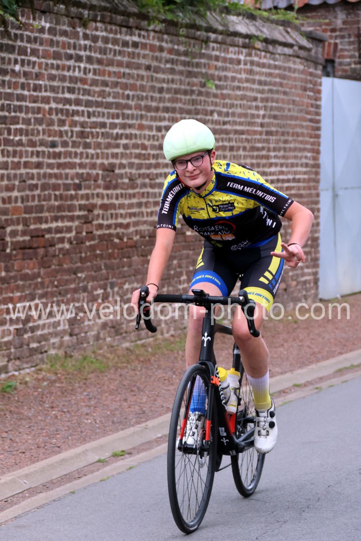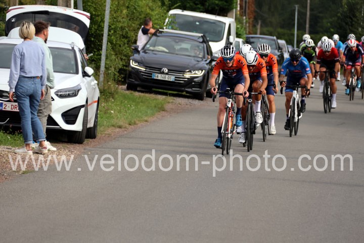 A l’arrière, la poursuite sera entreprise par Joakim Semoulin ( Team BBL Hergnies ), de Timothé Laleu ( US St André ) et Luciano Mingoia ( New Team Orange ) notamment et un peu plus loin, un groupe où l’on reconnaissait David Meys ( VC Roubaix ) et Dimitri Bernier ( CC Ferrierois ).