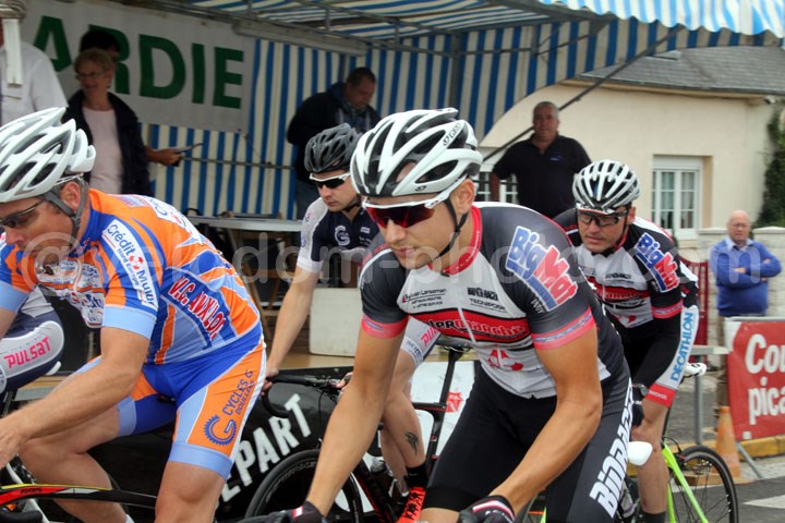 La course prit très vite son élan avec 4 hommes qui prenaient les commandes de la course dès les 1ers hectomètres de course. Dans cette échappée qui s’avérera décisive, on retrouvera Stéphane Delimauges ( AC Montdidier ), Jean Lou Robin ( AC Moreuillois ), Antoine Duflos ( AC Amiénoise ) et Kévin Briand ( Team 2 Méricourt ). Les 4 coureurs vont rapidement prendre l’ascendant sur le peloton même si ce dernier resterait bien longtemps qu’à une vingtaine de secondes.