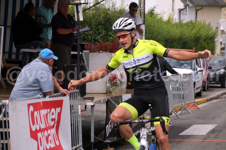 A 2 kilomètres de l’arrivée, le méricourtois Kévin Briand profita d’un moment d’accalmie de l’échappée pour placer une superbe attaque qui lui permettra de remporter la victoire en solitaire.