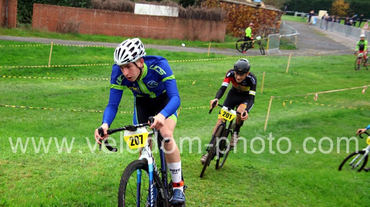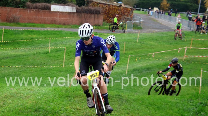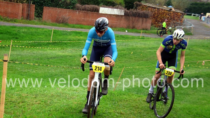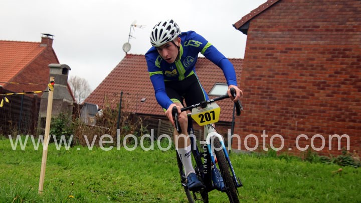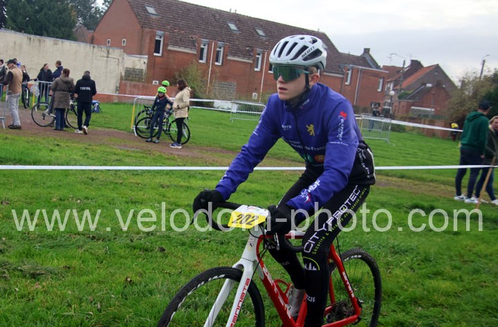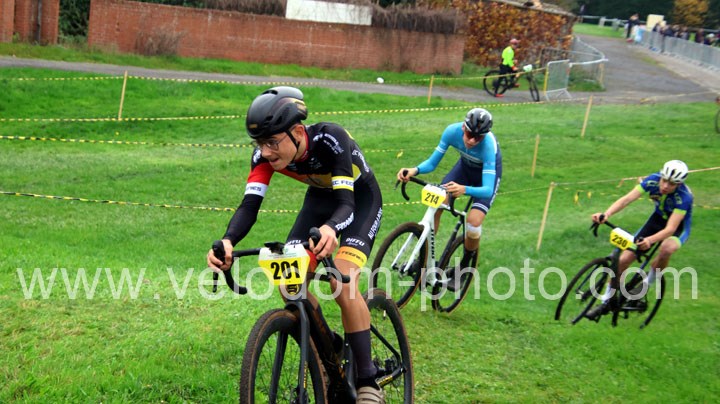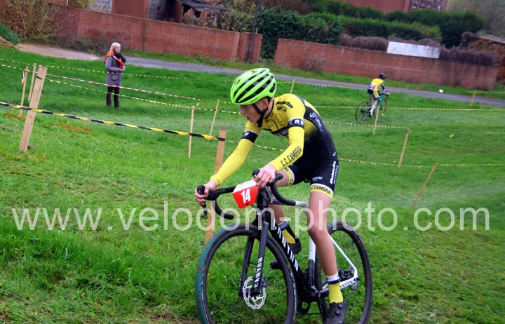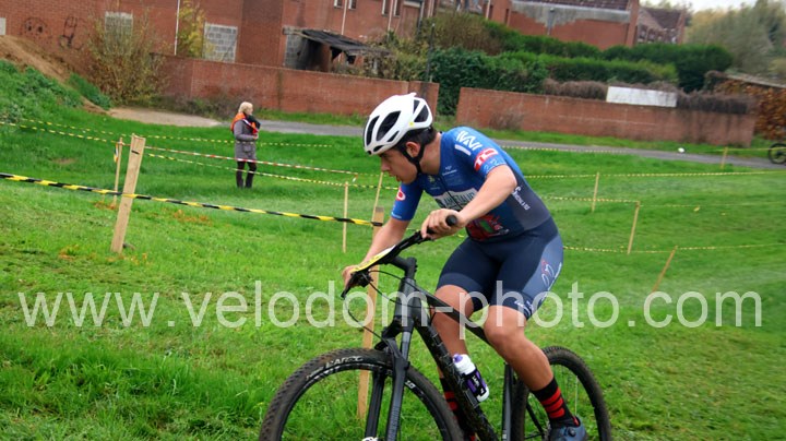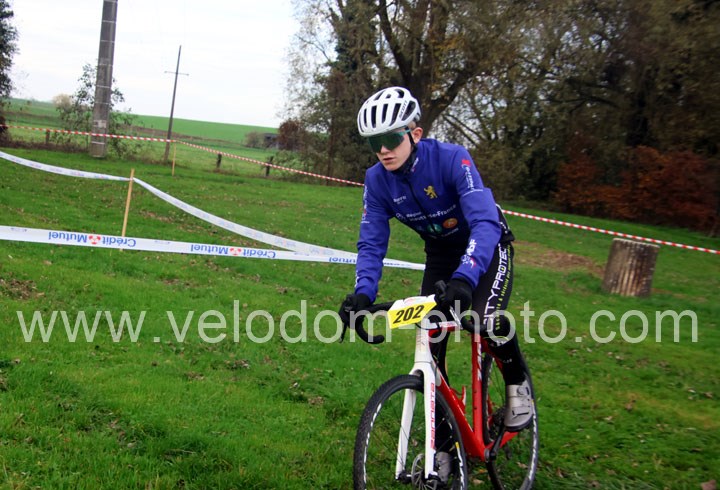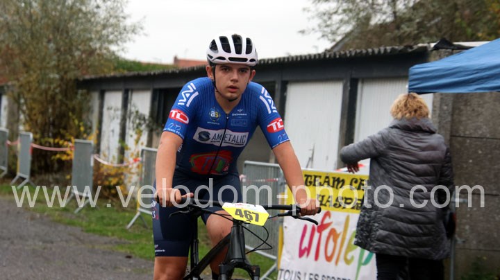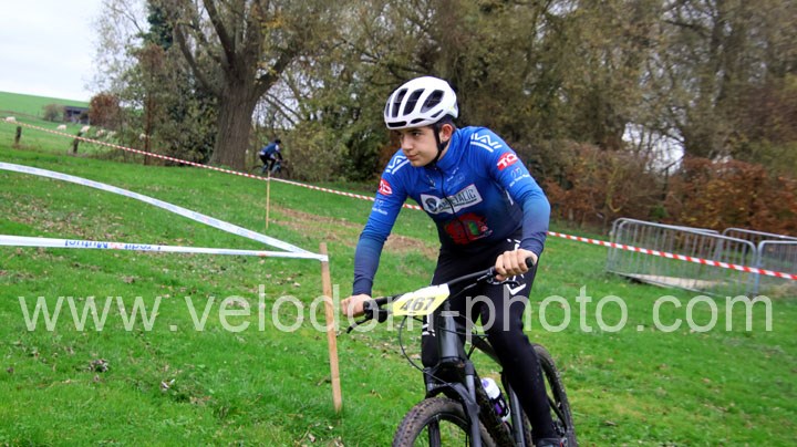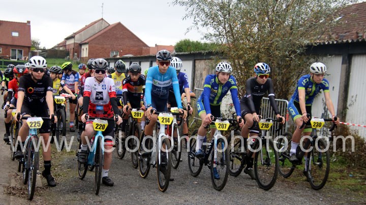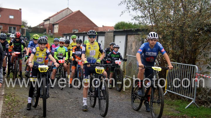 C’est une vingtaine de concurrents qui engagèrent les hostilités sur ce joli parcours. Dés le coup de starter, la course va prendre son envol avec une belle attaque de Mateo Cailleau qui va prendre seul les commandes de la course. Un peu plus loin, on retrouvait en poursuite Charles Canipel ( CC Cambrésien ) et Matheo Rivart ( VTT Pontois ).