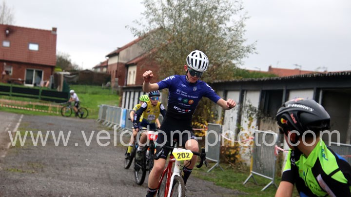 Quelques instants plus tard, c’est le finesien Lony Alexandre qui tentait sa chance en prenant seul les commandes de la course devant Ylan Linster et un trio composé d’Alexandre Houset, Simon Boonaert et Corentin Bonamy ( UC Solre le Château ).