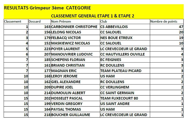 Après le prix des monts, nouvelle situation en tête de course avec 2 hommes qui tenteront leur chance : David Brasseur ( CC Salouel ) et Jerome Leroy ( US Ham ). Mais sous l’impulsion du leader au classement général Victor Felbacq ( NES Boue Etreux ). Les attaquants seront revus.
