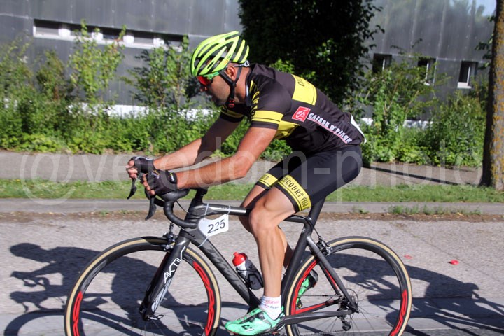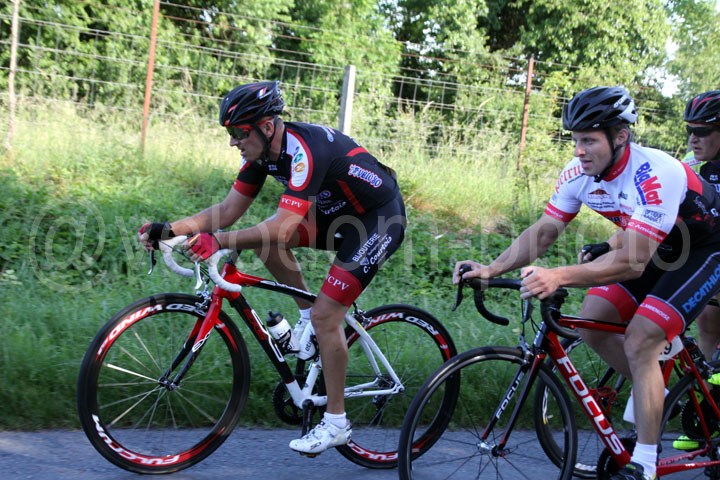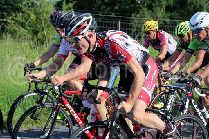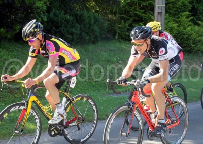 Quelques instants plus tard, on verra une 1ère attaque à l’actif Valentin PetitJean ( EC Feignies ) qui sera très vite rejoint par Fabien Noel ( CC St Germain ) et Christophe Chevalier ( Eaucourt Velo club ). Les trois hommes rouleront de concert avec en ligne de mire le 1er sprint pour le classement par points qui sera remporté par Valentin Petitjean. Bien qu’efficace, l’échappée sera revue par le peloton avant que Nicolas Decock ( US St André ) ne tente lui aussi sa chance en tête de course. Lui aussi ne sera pas couronné de succès. Le prix des monts donnera lui encore une fois à une belle bagarre avec un indomptable Christophe Carbonnier bien décidé à garder cette belle tunique maillot à pois qui passera en tête en haut devant Nicolas Lelong ( Salouel ).