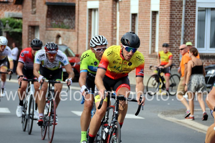 Devant Wins avait la situation bien en main et filer vers une nouvelle victoire. Derrière c’est un groupe de 5 coureurs qui se chargé de la poursuite avec Julien Lorriaux ( VC Solesmes ), Joakim Semoulin ( BBL Hergnies ), Romuald Marthe ( EC Lieu St Amand ) et Mathys Coutelard ( VC Solesmes ) notamment