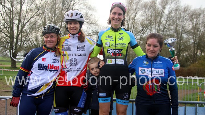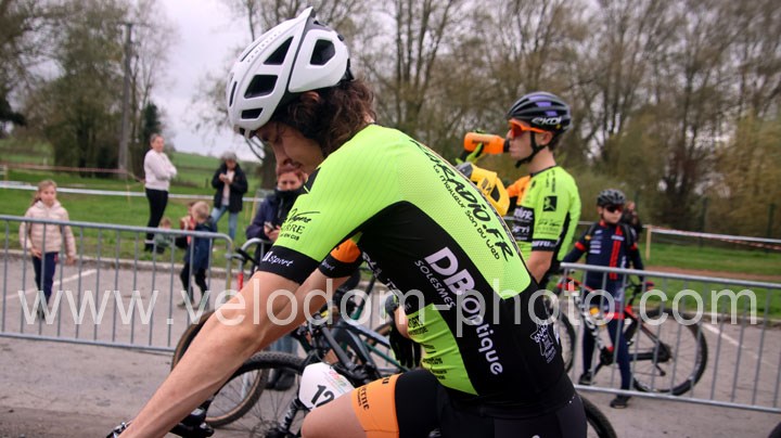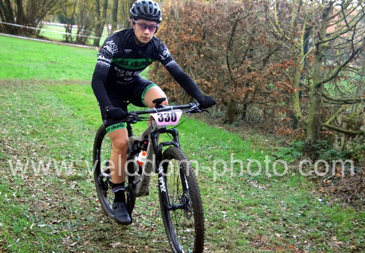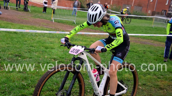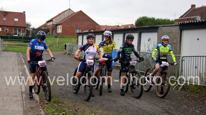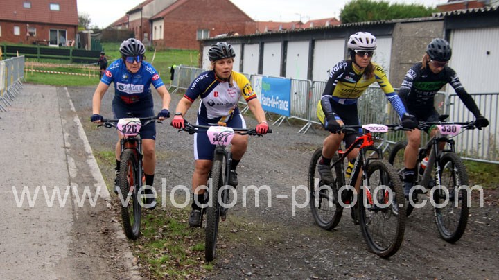 Elles seront 5 au départ chez les féminines. Une course qui va rapidement se décanter avec une Alexandrine Horcholle ( VTT Pontois ) très en verve et qui va prendre les commandes de la course devant Maggy Alexandre ( EC Feignies ) jamais très loin et Laura Pagano ( New Team Maulde ).