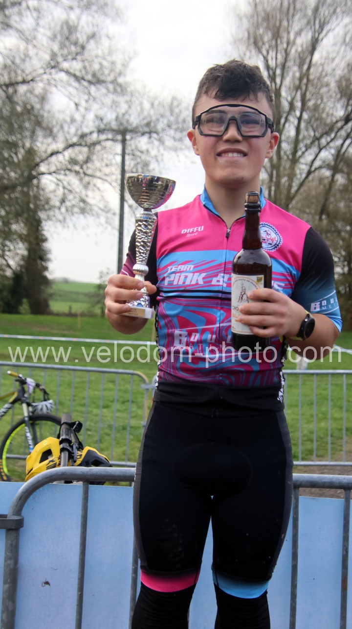 Ils furent deux à se bagarrer chez les Juniors. Très vite la décision va s’opérer avec l’envolée de Maxime Przemyski ( Team Pink en Blue ) devant Alexis Finet ( New Team Maulde ). Malgré pour ce deuxième, il sera contraint à l’abandon laissant Maxime Przemyski s’envolait vers la victoire. Ce qu’il fera de belle façon