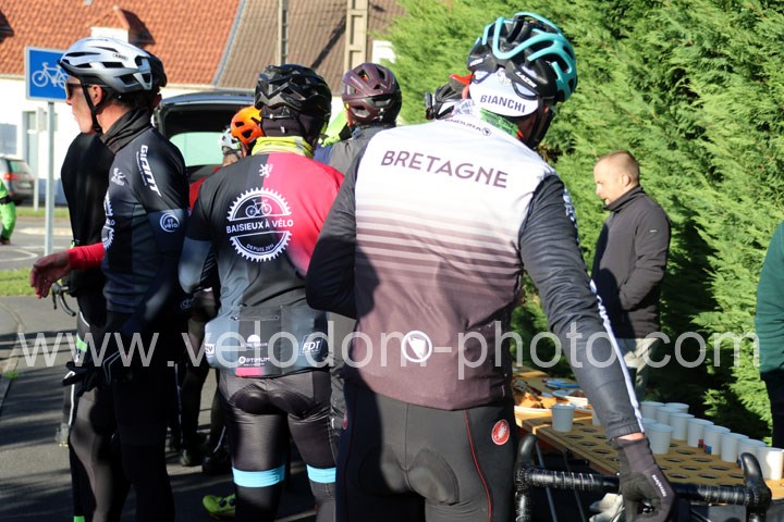 Au programme du 3 superbes circuits de 35 – 65 et 90 Kms. Après le café de bienvenue assorti du petit biscuit, il était temps de s’envoler vers cette belle organisation direction Lesquin – Les Quatres cantons – Sainghin en Melantois – Bouvines – Louvil – Templeuve en Pévèle – Genech – Nomain ou avait lieu le 1er ravitaillement du jour pour le 65 et 90 Kms. Endroit également pour bifurcation vers le 90 Kms. Pour le grand parcours, le circuit se poursuivait vers Aix en Pévèle – Landas – Beuvry la Forêt – Marchiennes – Vred – Flines lez Raches – Raches où avait lieu le 2ème ravitaillement du jour pour les grands parcours puis destination Raimbeaucourt – Moncheaux – Mons en Pévèle et la montée vers La Neuville ensuite direction Attiches – Seclin avant le retour sur Vendeville