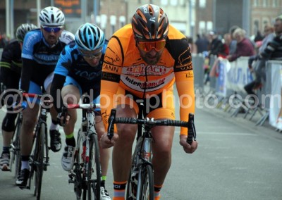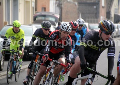 C’est un beau peloton de 2ème catégorie qui s’engagea dans cette 2ème épreuve du jour. Si les 1ers tours ne se seront pas décisifs, il faudra attendre le 3ème tour pour voir se profiler les 1ères attaques du jour. Dans le 4ème tour, la course redoublera en intensité avec une belle accélération de Frédéric Chombart ( Team Be Six ). A l’arrière, on aura une belle réaction du solide Damien Demain ( Velo Sprint Bouchain ). Nous ne serons pas au bout de nos surprises avec un petit groupe qui va faire la différence dans les minutes qui vont suivre avec aux avants postes, Michael Glineur ( EC Lieu St Amand et Damien Demain ( Velo Sprint Bouchain ) notamment. Ce ne sera pas la bonne. Quelques instants plus tard, c’est Gregory Carneau ( CC Orchies ) qui tentera de s’extraire du peloton. Mais à l’arrière, on devait rapidement réagir et l’attaquant était finalement rejoint avant qu’un groupe de 5 coureurs ne fasse la différence avec notamment Michael Glineur, Olivier Vanspeybroeck et Frédéric Chombart bien décidés à venir jouer les 1ers rôles. Nous aurons même le retour de Fabien Penserini ( VCU Halluin ) dans les dernières minutes de course laissant présager une dernière grande explication dans les derniers hectomètres de course.