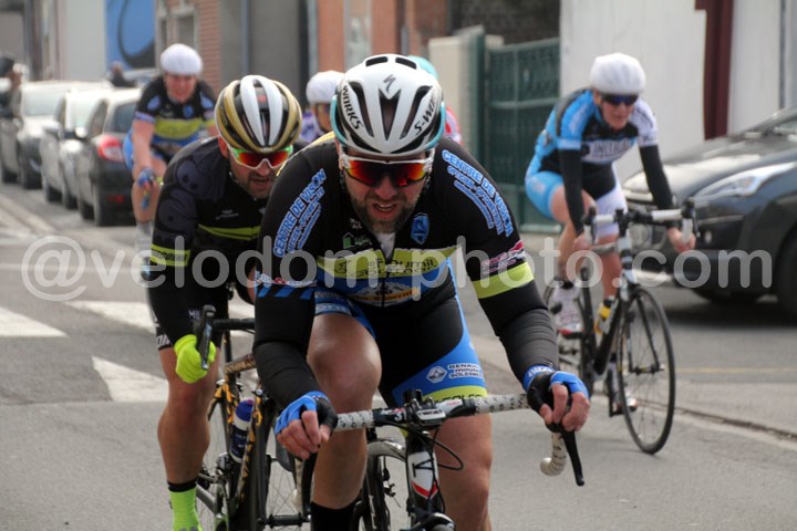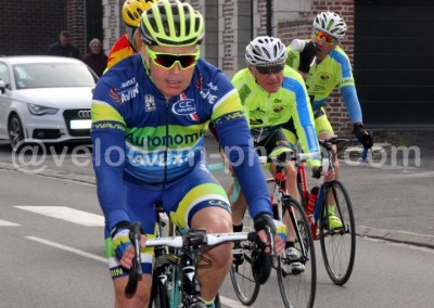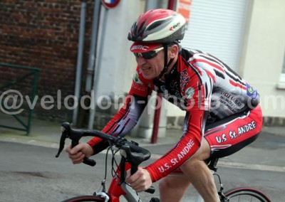 Une deuxième épreuve qui sera marquée par quelques attaques et notamment une belle explication entre Xavier Dias ( Team JPP ) et Bernard Cieplik ( US St André ). Dès le départ, le peloton imprimera un rythme assez soutenu laissant présager de futures grandes offensives. On retrouvera notamment dans les 1ers tours et en bonne position le local du jour Christophe Szczurek ( Fenain ). Les 1ères minutes de course ne marqueront pas d’offensives décisives. Il faudra attendre le 4ème tour pour que la course ne prenne un nouvel élan avec une belle attaque de Xavier Dias ( Team JPP ) qui se retrouvera seul aux avants postes. A l’arrière, on retrouvera un contre d’Antonio Russo ( CC Armentières ) et Bernard Cieplik ( US St André ). C’est trois-là se retrouveront en tête de la course dans le final puis deux. En effet, dans les dernières minutes de course : Bernard Cieplik et Xavier Dias s’envoleront à l’avant pour se livrer la dernière explication du jour. Dans les derniers hectomètres de course, c’est finalement Xavier Dias qui prendra le meilleur devançant sur la ligne d’arrivée Bernard Cieplik. Pour la 3ème place c’est Jacky Vandendorpe qui prenait le meilleur. A noter la belle 12ème de Patrick Allepaerts ( Fenain ).