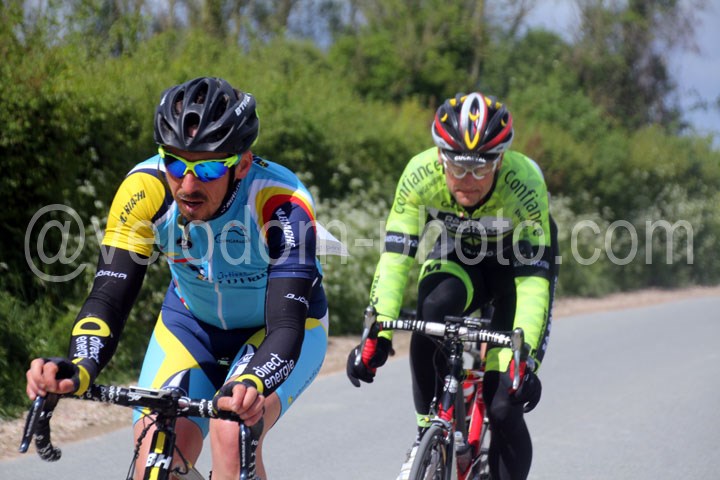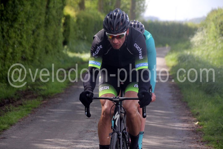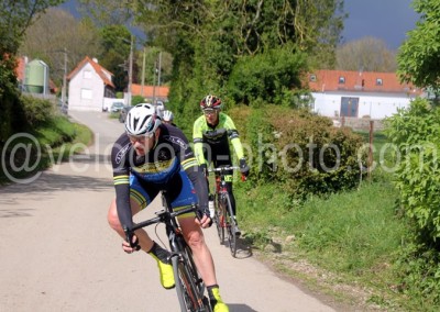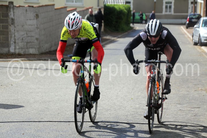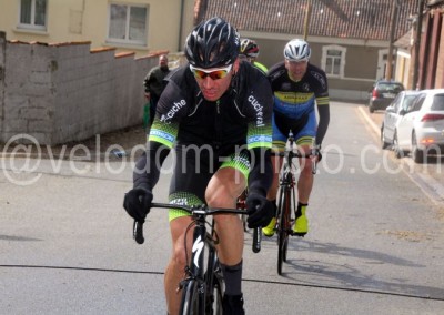 Peu avant la mi-course, 2 hommes vont forcer le rythme. Ce sont d’ailleurs eux qui joueront la gagne avec Richard Welwaert ( Méricourt ) et Eric Rouze ( Team JPP ). A l’arrière et un peu en retrait on retrouvera en poursuite Xavier Dias et Eric Wach ( Beuvry ).