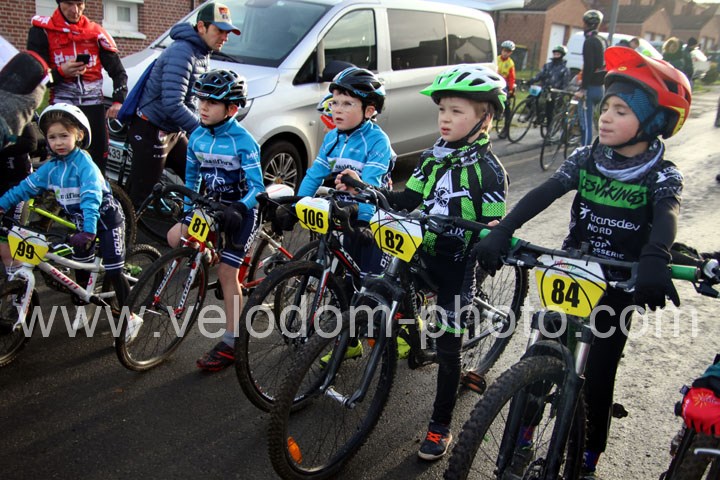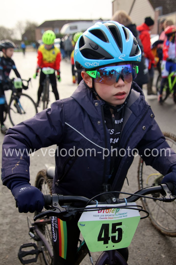 Ce Dimanche, 1er Grand rendez-vous de la saison cyclo cross UFOLEP avec les Championnats Départementaux Nord UFOLEP dans la commune d’Avesnes les Aubert. Une superbe organisation de la Team Saulzoir Montrécourt avec un magnifique circuit technique et boueux et qui a permis du beau spectacle tout au long de la journée. Sans oublier des stands restaurations bien appréciés par tous. Côté course ce sont les écoles de cyclisme qui ont ouvert les hostilités sur le petit circuit aménagé pour eux et qui ont permis de décerner les 1ers titres de champions départementaux. Chez les poussins magnifique victoire de Timéo Rouly ( EC Lieu St Amand ), Jules Herbin ( VC Escaut Anzin ) chez les Pupilles et enfin d’Ylan Flahaut ( Team Enfer du Nord ) chez les Benjamins. Une bien belle ouverture des jeunes.