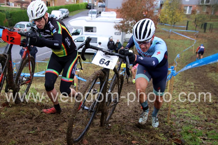 Après deux magnifiques épreuves qui avaient confrontés les jeunes et féminines. Ce sont les vétérans qui prirent part aux festivités du jour sur le superbe circuit d’Avesnes les Aubert. De belles bagarres dans chacune des catégories qui ont sacrés des coureurs expérimentés comme Cyril Bugnicourt ( UV Fourmies ) chez les 40-49 ans qui au terme d’une belle bagarre avec Sébastien Lefebvre ( UV Fourmies ) est allé chercher le titre de belle manière. Du coté des vétérans 50/59 ans, magnifique prestation de Laurent Legueux ( UV Fourmies ) qui est allé conquérir un beau titre. Enfin le sacre annoncé de Philippe Drolet chez les 60 ans et + qui rappelons le est multiple champion national de cyclo cross