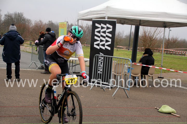 Deux concurrentes au départ dans cette catégorie avec dés le coup de starter Fanny Bury qui faisait la différence à l’avant en s’installant seule en tête de la course. Derrière on retrouvait Fanny Rivart ( Gazelec Douai ) en poursuite. Sans discussion et avec la manière Fanny Bury ira chercher la victoire et le titre devant Fanny Rivart