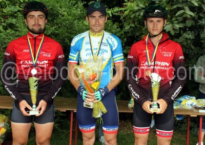Une course qui va vite tourné à l’avantage de Florent Houdart ( 3C team ). En effet, dés le départ, il va prendre les devant et ne sera plus rejoint par ses adversaires. Derrière, la poursuite viendra de Germain Samier ( 3C Team ) et Adrien Bouzere ( Etroeungt ). Mais devant Houdart maintenait le cap et se dirigeait vers la victoire et le titre. Ce qu’il fit de belle façon devant Germain Samier et Adrien Bouzere.