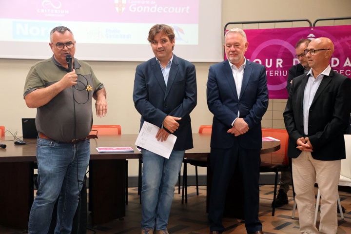 Ce Lundi, François Nimal, l’organisateur du 1er Critérium Féminin professionnel à Gondecourt avait convié la presse et les élus pour présenter cette 1ère édition du Critérium. Un bel événement qui s’annonce grandiose avec un beau circuit en ville et un beau plateau qui devrait donner du beau spectacle tout au long de la soirée. Une épreuve qui aura lieu le Lundi 16 Septembre prochain avec de nombreuses animations et qui sera animé par le grand speaker Daniel Mangeas. Venez tous applaudir ces grandes championnes avec la présence notamment de l’ancienne championne de France Victoire Berteau ou encore Evita Music 4ème du dernier Tour de France
