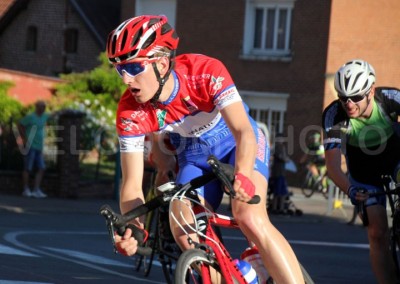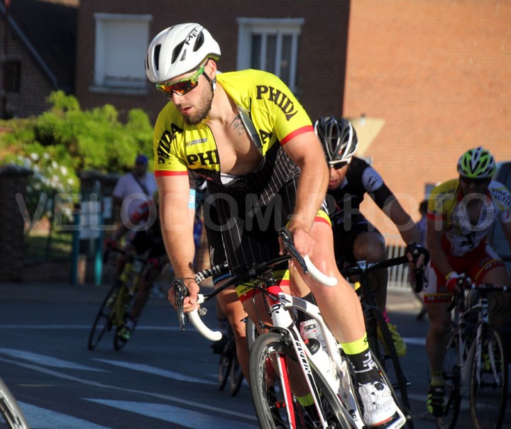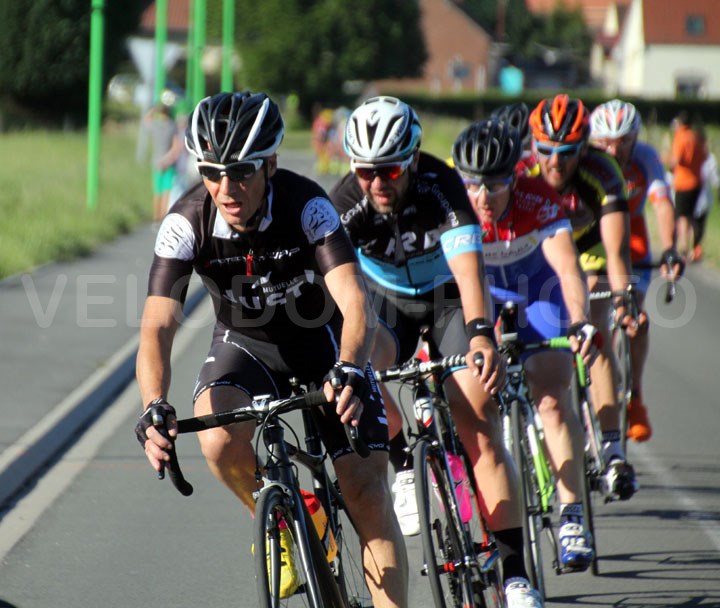 C’est une trentaine de concurrents qui s’élança dans cette 1ère bataille de la soirée. D’entrée, la grande bagarre vit le jour avec une 1ère belle attaque de Christophe Dubruille ( Artres ). Mais à l’arrière les réactions furent très vives avec un regroupement qui s’opérait quelques instants plus tard. Dans le 3ème tour, les grosses offensives se firent à nouveau présentes avec un petit groupe qui se constituait à l’avant avec notamment Clément Lugez ( Louvroil ) et Corentin Veaux ( Artres ). Derrière, on était toujours aussi vigilant et le peloton devrait se regrouper quelques hectomètres plus loin. A noter qu’à l’avant, on retrouvait bien souvent les sociétaires de Artres et Louvroil.