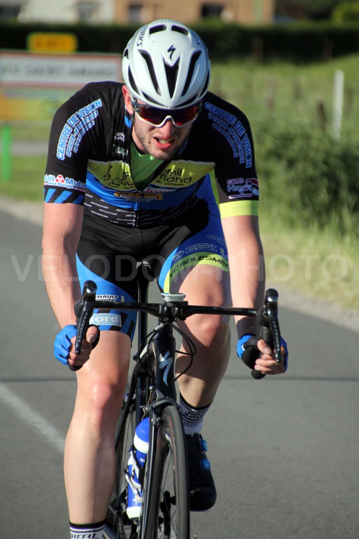 Il faudra attendre la mi-course pour que l’échappée décisive ne dessine avec Baptiste Derode ( Fenain Cyclo club ) et Stéphane Syllebranque ( Roue d’Or Sanaryenne ). Quelques instants plus tard, Jérome Landas ( Fenain ) viendra rejoindre le groupe de tête avant de lécher prise quelques tours plus tard. C’est donc entre Syllebranque et Derode qui se jouera la victoire finale. Dans le dernier tour, Stéphane Syllebranque aura finalement le dernier mot et viendra cueillir une belle victoire en solitaire devant Baptiste Derode qui se sera bien battu. Quelques secondes plus tard, Clément Lugez viendra prendre une belle 3ème place devant son coéquipier Dorian Lionne.
