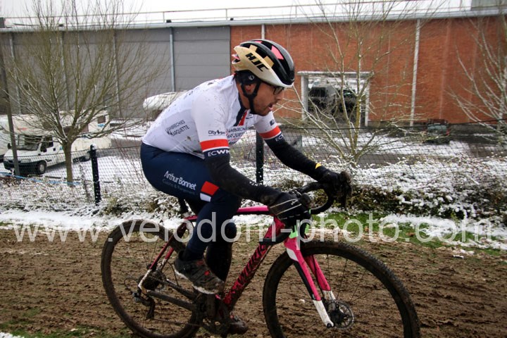 Après deux belles épreuves dédiées aux jeunes et féminines, ce sont les séniors 1ères, 2èmes et 3èmes catégories qui s’engagèrent dans la lutte pour la victoire. Le terrain rendu très glissant suite aux chutes de neige du jour aura fait la grande sélection dans le peloton. A ce jeu et avec grande adresse, c’est Ludovic Lefranc ( Noeux les Mines ) qui en tirera partie en dominant de belle manière cette épreuve même si derrière on tenta de revenir au 1er plan. Quoiqu’il en soit, Lefranc sera le grand gagnant du jour en allant chercher une belle victoire. En 2ème catégorie, bel exploit de Nathan Cardinal ( Haveluy ) qui glanera un beau succès tout comme Randy Foulon ( Art team ) en 3ème catégorie
