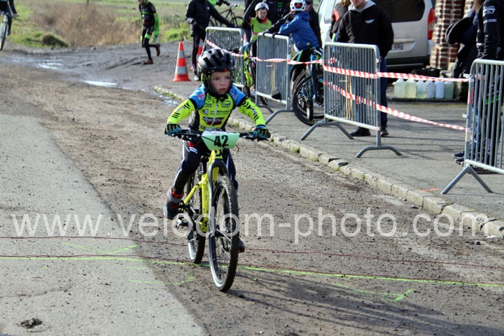 Ce sont 4 poussins qui se mirent en quête de la victoire. Dés le coup de starter, la grande bagarre va avoir lieu avec une belle action de Tristan Dubray ( Les Vikings ) qui se placera seul en tête dès le 1er tour. Une position qu’il ne quittera plus jusque l’arrivée. Au fil des minutes, il va accentuer son avantage pour aller chercher la victoire devant Raphael Ledain ( VC Escaut Anzin ) et Célio Lalot ( Les Vikings )