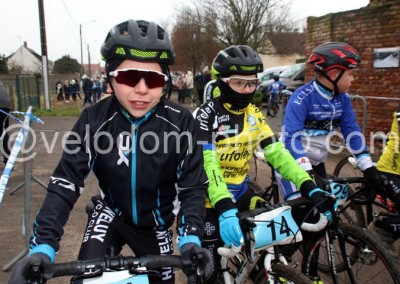 Chez les Benjamins, la course sera très haletante et très disputée. Dés le coup de starter, les grandes offensives prendront forme avec un trio qui va se dégager dés les 1ers hectomètres de course dans lequel on verra Lony Alexandre ( VC Solesmes ), Axel Gochon ( EC Tourcoing ) le champion régional en titre et Simon Hauw ( CL Barlin ).