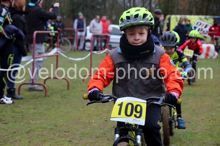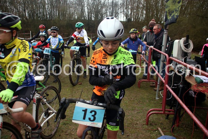 Ils furent 9 à s’élancer chez les Poussins. Très vite on entrait dans le vif du sujet avec deux coureurs qui s’installaient solidement en tête de course. Tom Depres ( EC Lieu St Amand ) et Paul Knockaert ( Verlinghem ). Derrière ce duo on retrouvait en poursuite Mathis Boussemart ( VTT St Amand ) et Camille Lefebvre ( UV Fourmies ).
