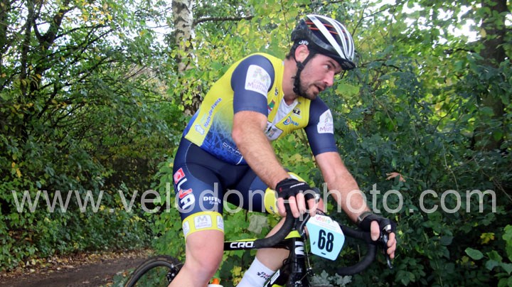 Dès le 1er tour, la course va prendre sa tournure définitive avec l’envol d’Elias Bugnicourt qui va s’installer solidement en tête de la course devant un duo composé de Pierrick Hebert ( New Team Orange ) et Sébastien Dassonville ( VC Noeuxois )