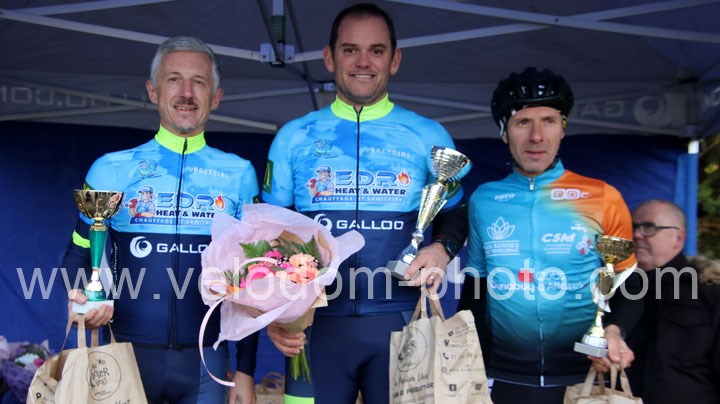 Devant, Benoit Georges avait son destin entre les mains et filait vers un beau succès ce qu’il fera de belle manière. Quelques secondes plus tard, Sylvain Dufour viendra prendre une belle 2ème place. Confirmant la domination des coureurs du VCU Halluin et devant Emmanuel Theve