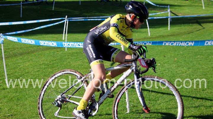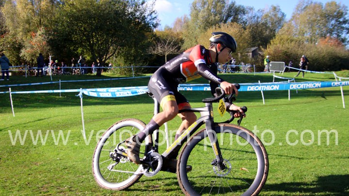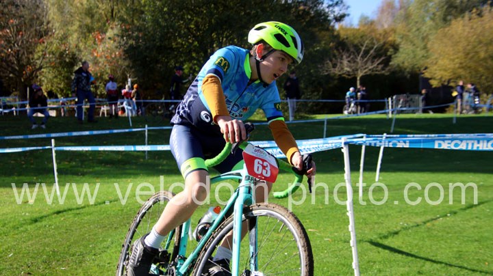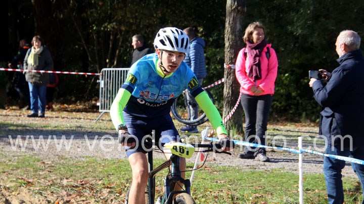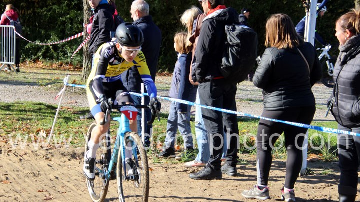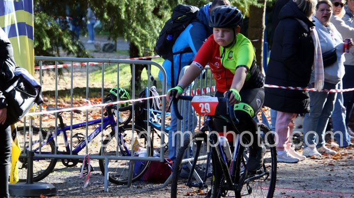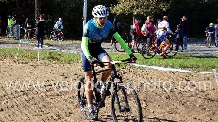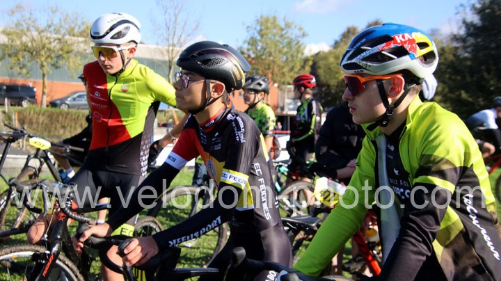 Alors que les minimes bataillaient pour la victoire. Chez les cadets cyclo cross, la grande explication arriva elle aussi très vite avec l’envolée dés le 1er tour de Lony Alexandre ( EC Feignies ). Un peu plus loin, on retrouvait Elie Grzeskiewicz ( EC Heninoise ) et Martin Haverbeke ( VC Bavaisien ).
