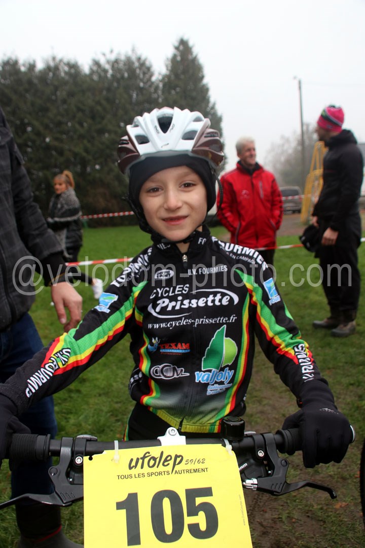 Ce sont 6 concurrents qui se lancèrent dans la bataille chez les poussins. Très vite, la course allait se décanter au profit du grand champion Ilan Flahaut ( EC Lieu St Amand ) qui prenait seul les commandes de la course dés les 1ers hectomètres de course. A l’arrière, on pouvait voir une belle réaction de Paul Knockaert ( CC Verlinghem ) mais aussi Thomas Van Friel ( Thomas Van Friel ). Au fil des tours, le coureur de Lieu St Amand sera impérial et ira cueillir une nouvelle victoire devant le solide Paul Knockaert et Thomas Van Friel.