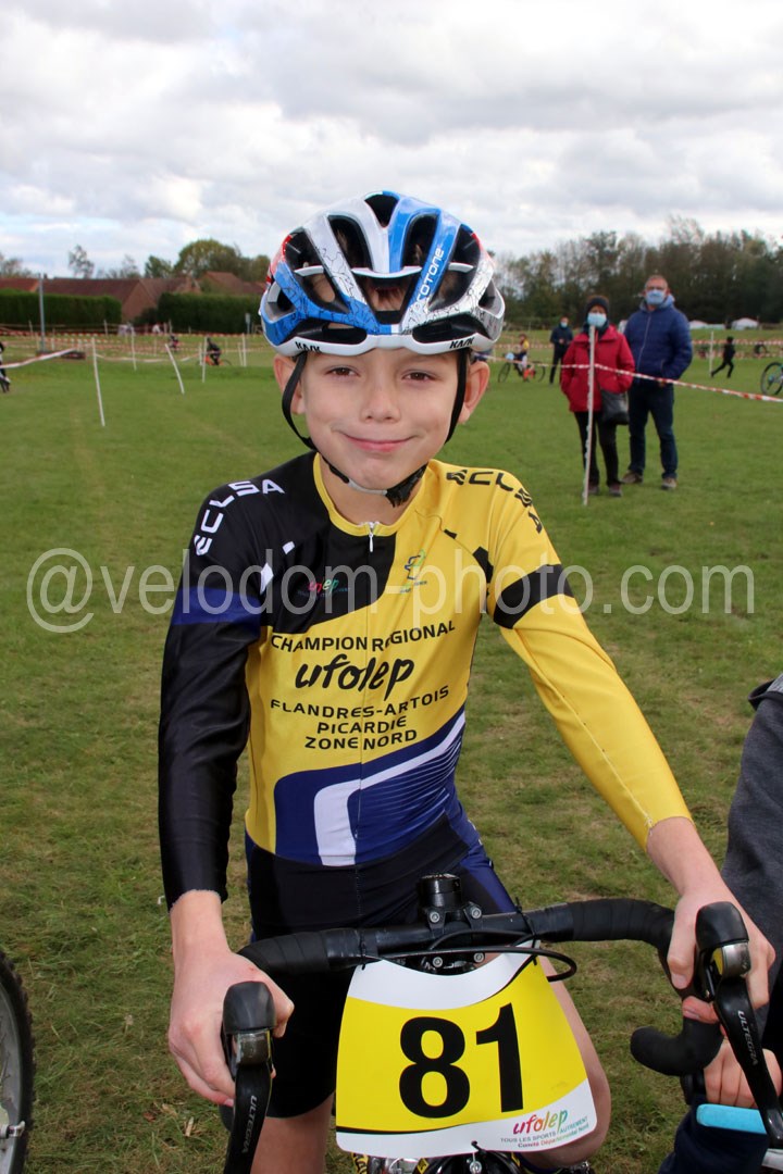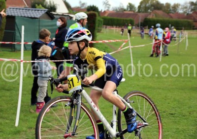 Ils furent 4 à se disputer la victoire chez les poussins. Très vite, on entrait dans le vif du sujet avec une belle accélération d’Ilan Flahaut ( EC Lieu St Amand ) qui le positionnera seul en tête de la course. Une position qu’il ne quittera plus jusque l’arrivée. Derrière à l’ouvrage, on retrouvait Maverick Hauterive ( Wingles ), Mathis Ratajczak ( CC Orchies ) et Leana Hardi ( Gazelec Douai )