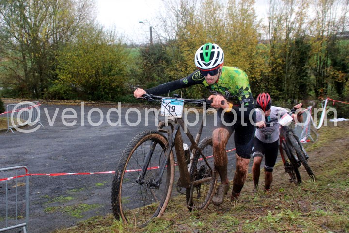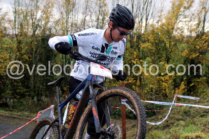 Si devant Flavien Menin évoluait de belle manière en tête de course. Derrière la grande bagarre continuait à être intense avec le beau retour de Thomas Meynet ( VTT St Amand ) qui courrait lui en solo et accompagné de Kenny Codeville ( ECWM ).