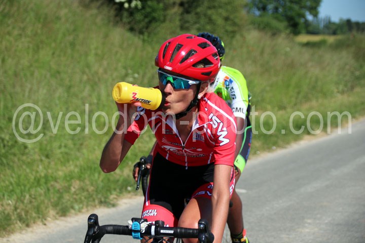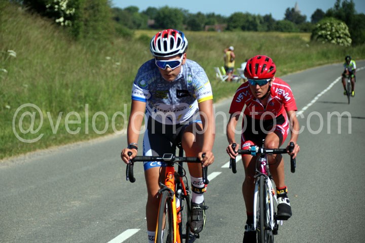 Elles seront 8 à se disputer la victoire chez les féminines. Dés le coup de starter, deux filles vont prendre la direction des opérations avec Emelyne Lamps ( CC Ardres ) et Virginie Soenen ( USVM ).