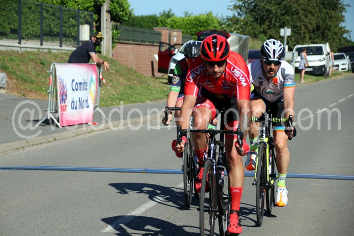 Il n’y aura pas d’échappées décisives durant les 1ères minutes de course. Il faudra attendre le final pour que celle-ci ne se décante avec deux hommes qui vont sortir le grand jeu dans le dernier tour avec Samir Bendebbour ( USVM ) et Yohan Fournier ( VC St Pol ).Dans les derniers hectomètres de course Bendebbour va faire parler sa pointe de vitesse et ira chercher la victoire devant Yohann Fournier. Quelques instants plus c’est Gilles Blary ( USVM ) qui réglera le groupe de contre pour la 3ème place devant François Lapotre ( USVM ).