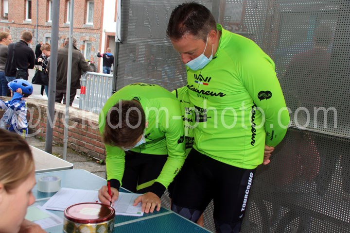 Ce Dimanche 22 Aout, la ville de Ferrières la Grande accueillait le traditionnel Grand Prix cycliste UFOLEP de la ville. Une superbe organisation de nos amis de la TSCP59 autour du Président Benoit Blondeau. Une magnifique après-midi de vélo où l’on put se délecter des grandes bagarres des jeunes aux plus anciens. Et ce n’est pas la météo très pluvieuse qui enleva l’ardeur des différents concurrents. Comme l’an dernier, cette belle après midi de compétitions débuta par une très belle course de draisienne avec pas moins de 13 participants qui se sont livrés une belle bataille. Après ce beau moment ce sont les poussins et pupilles qui firent le spectacle avec les victoires de Tom Bernier et Tom Morel.