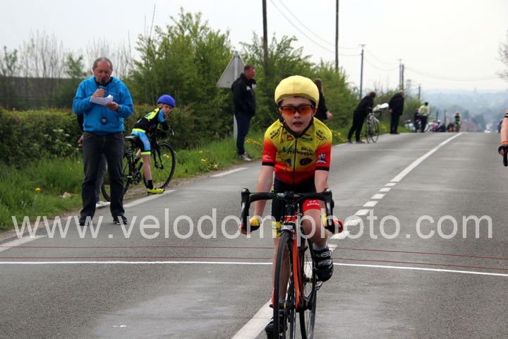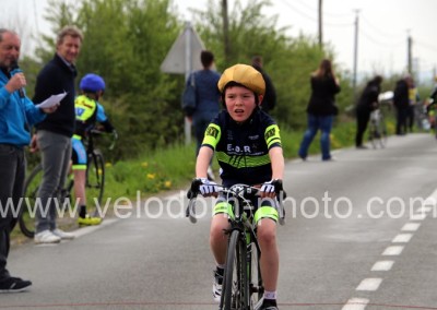 Ces sont 9 coureurs poussins qui engagèrent les hostilités et cela sur un tour de circuit de 4 Km. Après une belle bagarre au sommet c’est le jeune Luca Bonnemaison ( Hirson 52×11 ) qui s’imposait en solitaire avec la manière devant Camille Lefebvre ( UV Fourmies ) et Bathalzar Devret ( VC Bavay ). Après la victoire Samedi à Neuville en Avesnois, il faisait donc le doublé.