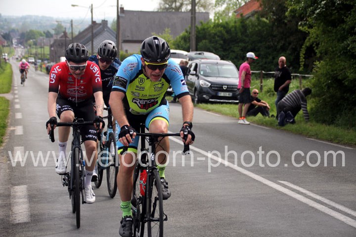 Un quatuor qui va vite prendre le pas sur le peloton. Il faudra ensuite attendre le 11ème tour pour que de nouvelles attaques ne se produisent avec la belle offensive de Thibaut Serant ( UV Fourmies ). Mais les poursuivants en décideront autrement et tout rentrera en ordre