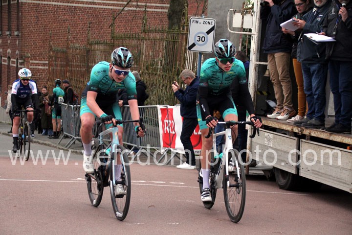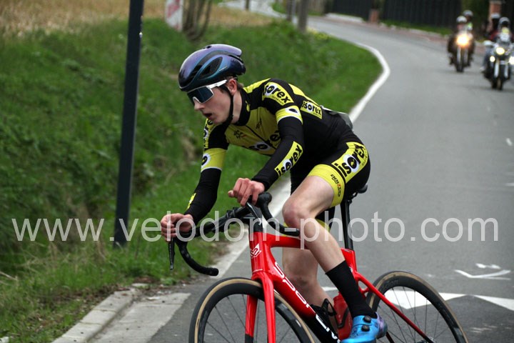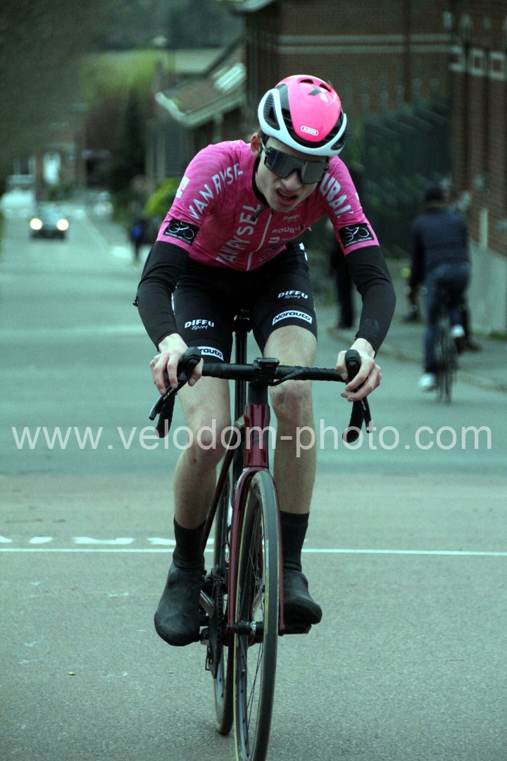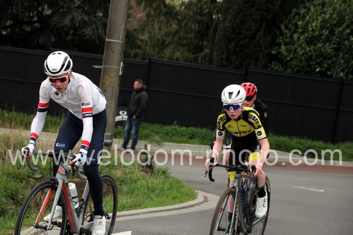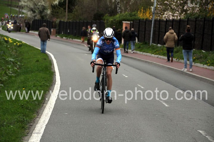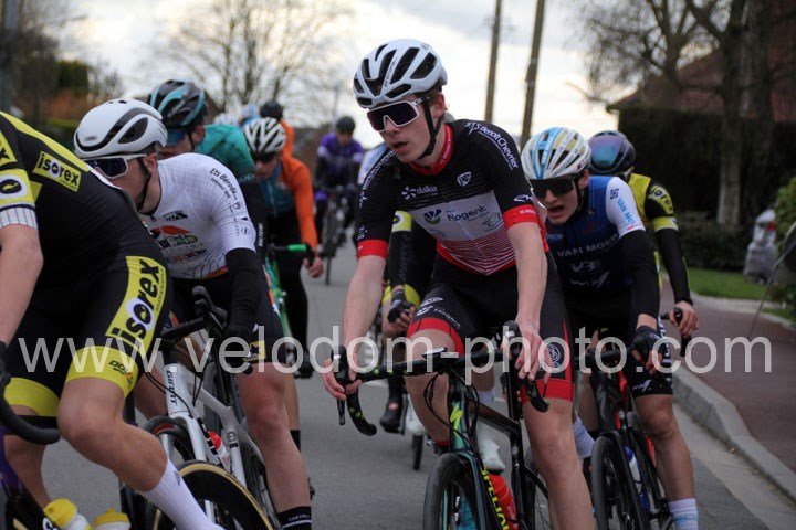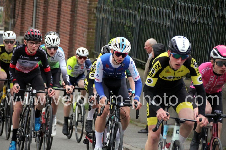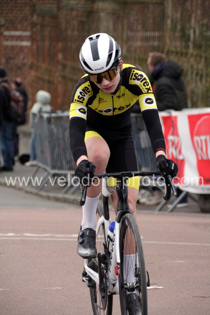 A l’arrière, la poursuite va s’engager avec un quatuor où l’on retrouvait Arthur Eck ( CC Nogent sur Oise ), Sjuul ( Tigerr Cycling Team ), Abe Beunders ( Tigerr Cycling Team ) et Gaspard Boodaert ( VC Roubaix Lille Metropole ). Le peloton était alors à 1 min à cet instant de la course