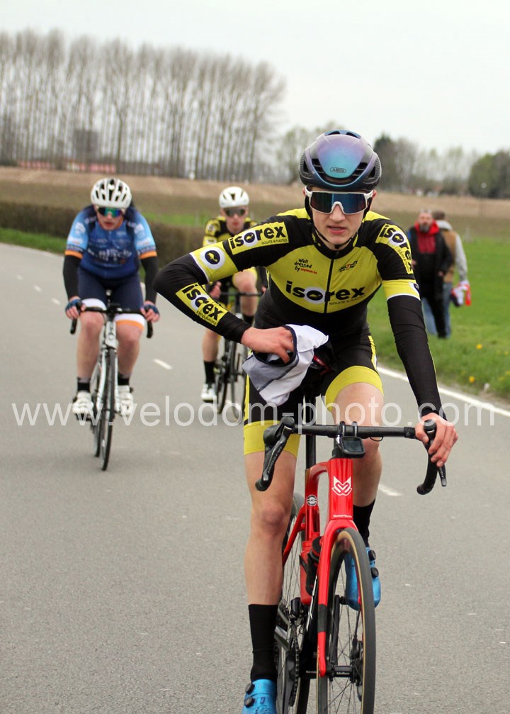 A l’amorce du dernier tour, la course va prendre sa tournure définitive avec la belle offensive de Jinze Joris qui va prendre seul les commandes de la course. Un peu plus loin on retrouvait un groupe en chasse composé de Julius Birkedal ( Team Isorex ), Sune Delvack ( Van Moer Logistics ) et Andreas Stenstrop ( Team Isorex ).