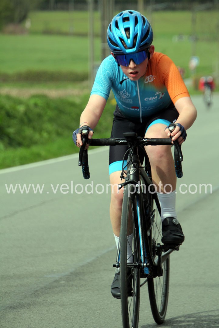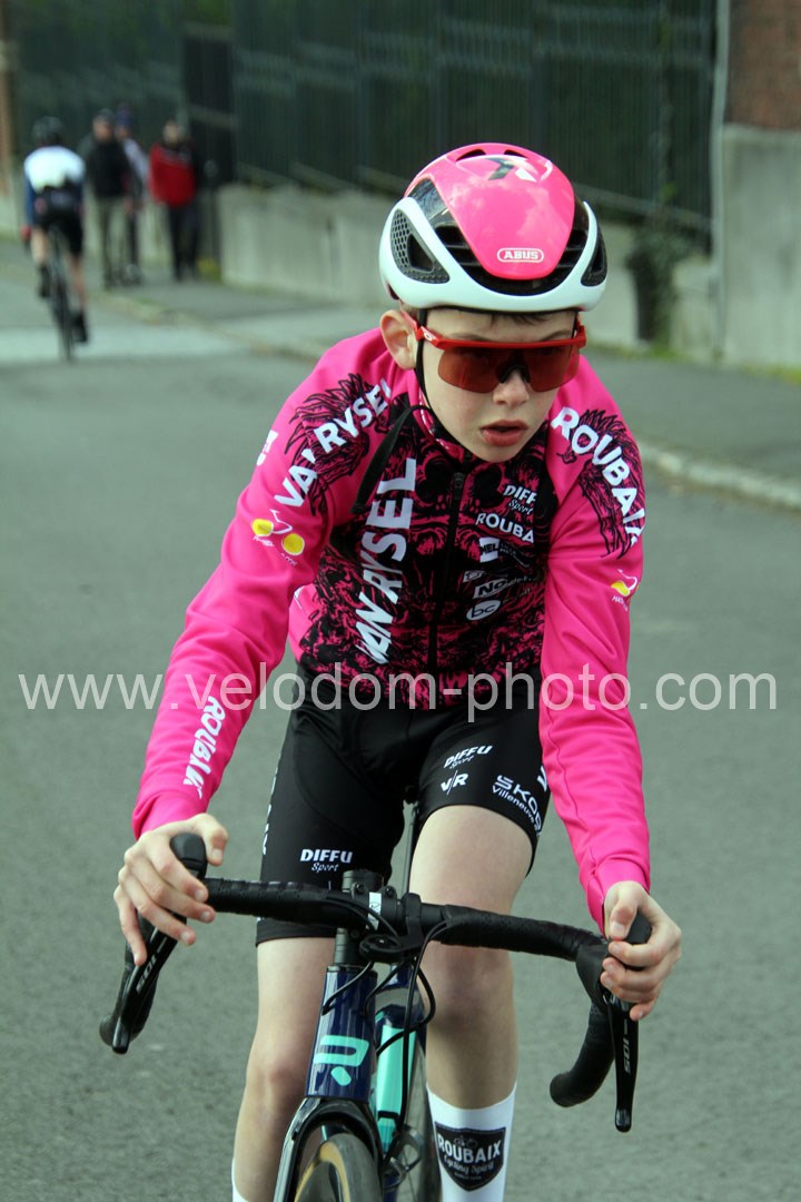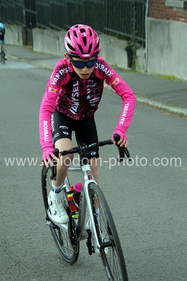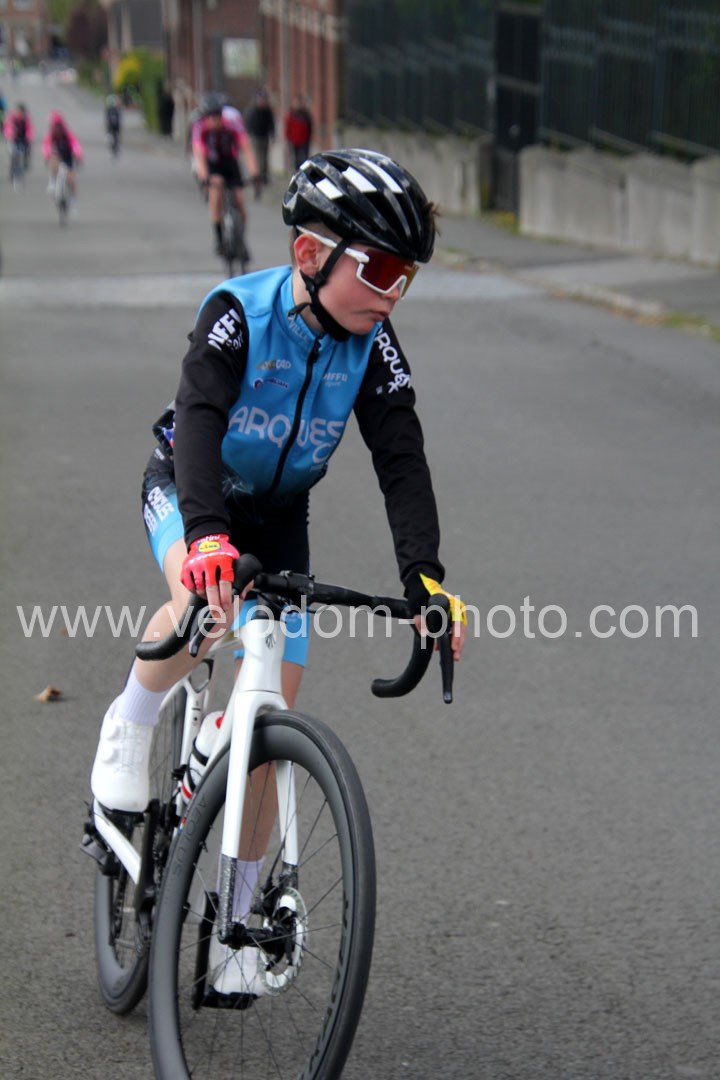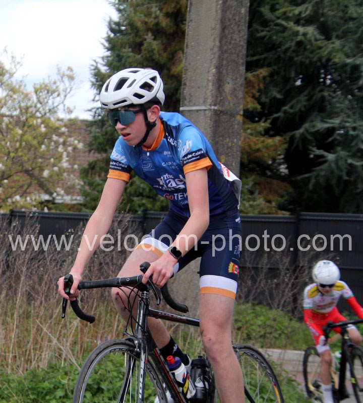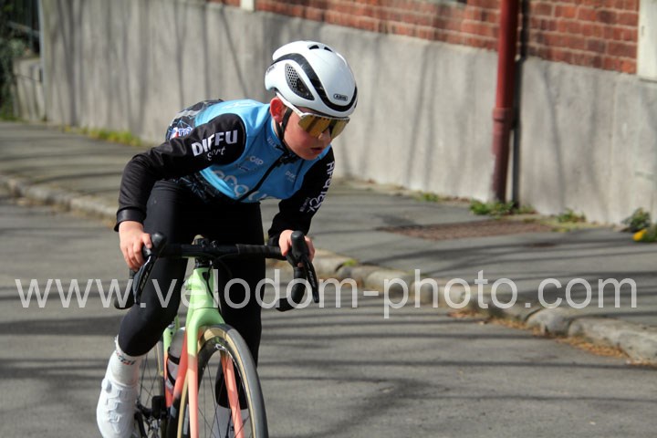 C’est dans le 3ème tour que la course va prendre sa tournure décisive avec une belle offensive de Noa Fontaine qui va le placer seul en tête. A quelques mètres en poursuite on retrouvait Victor Wypelier (  EC Wambrechies Marquette ) et un peu plus loin un trio composé d’Axel Molmy, Lysandre Detre et Bastien Lefebvre