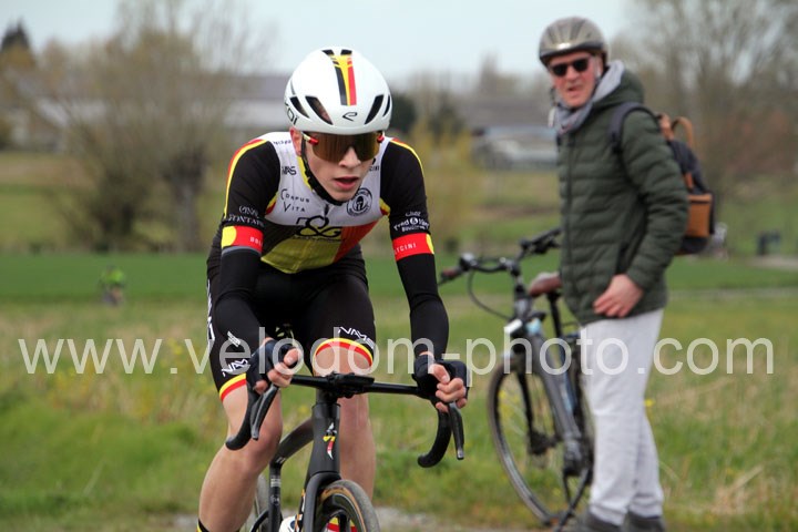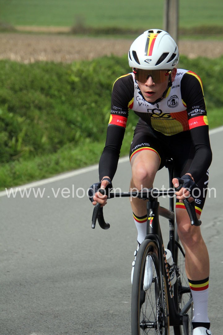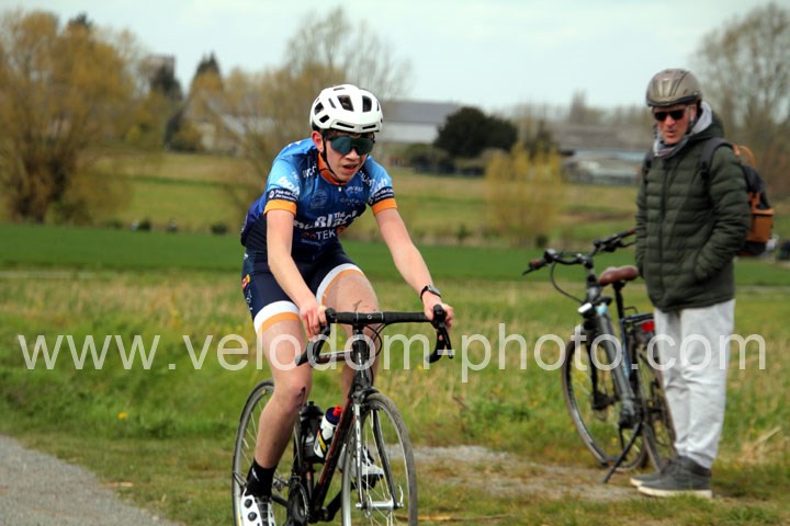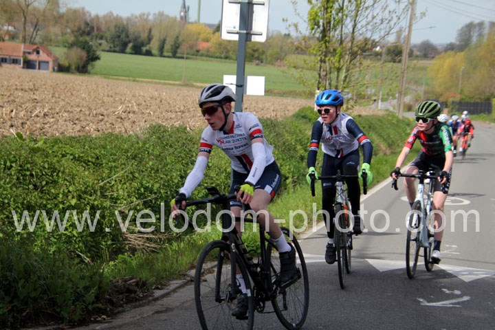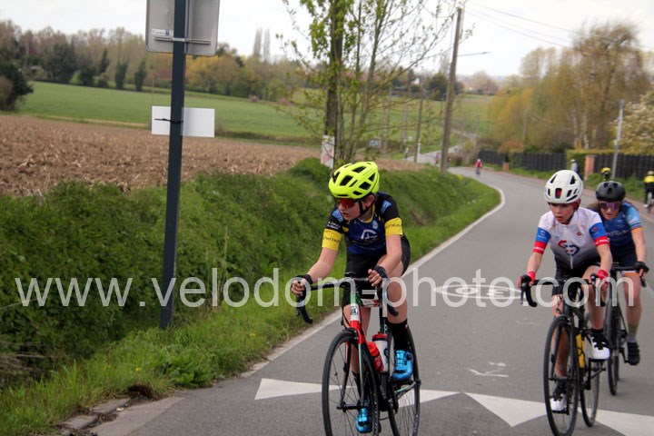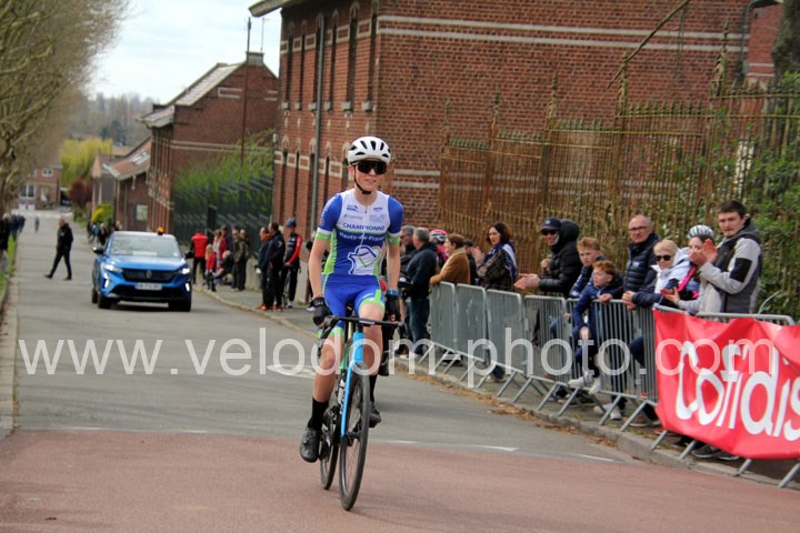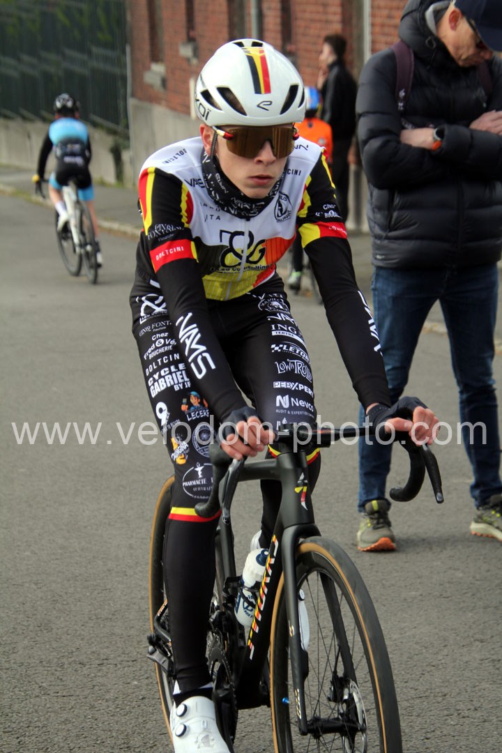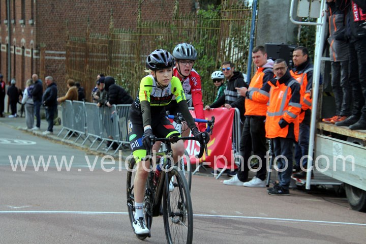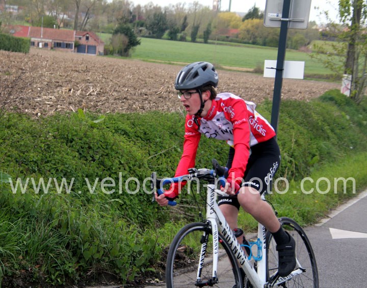 C’est dans le 3ème tour que la course va prendre sa tournure décisive avec une belle offensive de Noa Fontaine qui va le placer seul en tête. A quelques mètres en poursuite on retrouvait Victor Wypelier (  EC Wambrechies Marquette ) et un peu plus loin un trio composé d’Axel Molmy, Lysandre Detre et Bastien Lefebvre