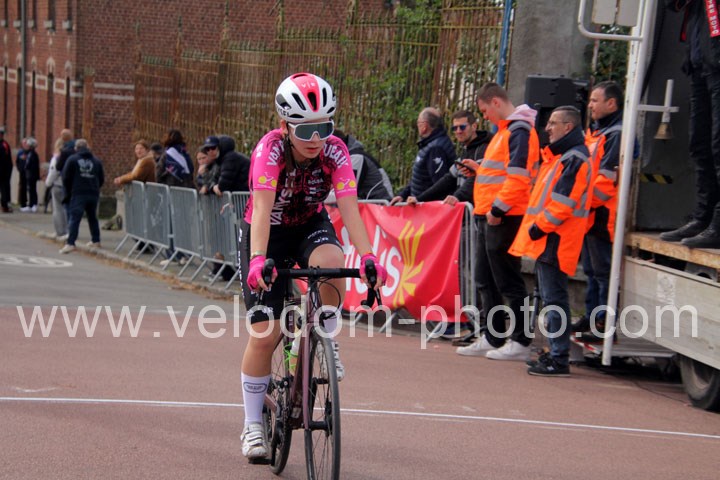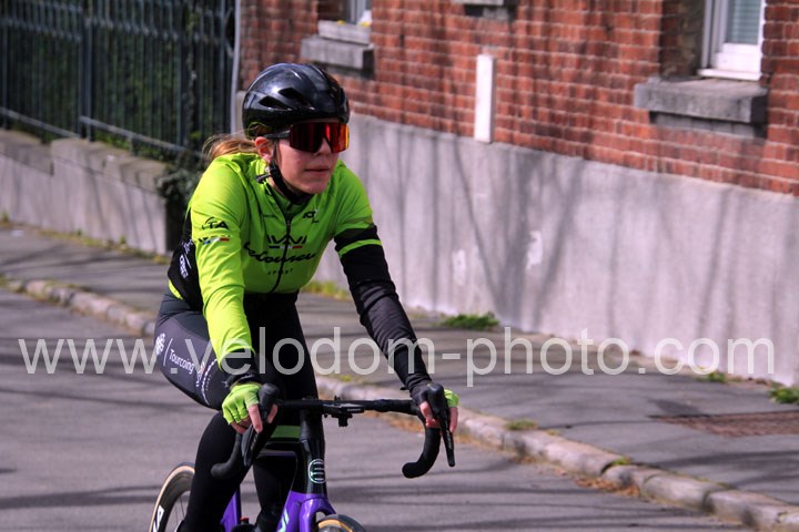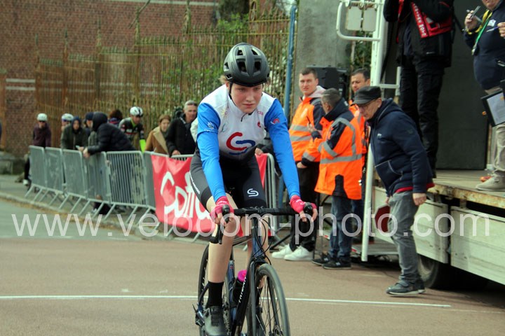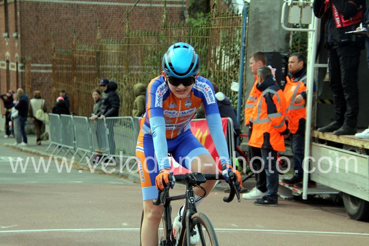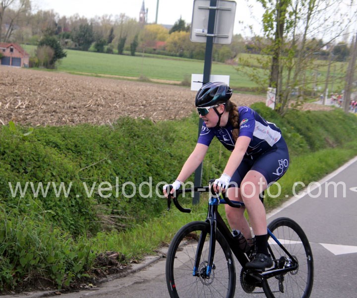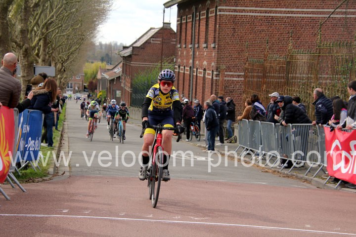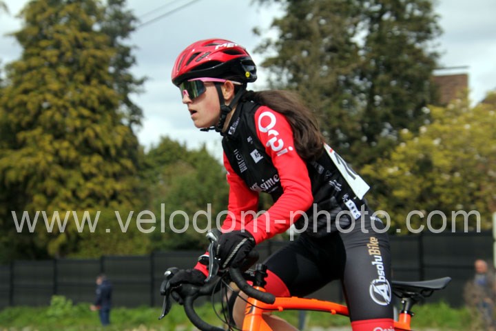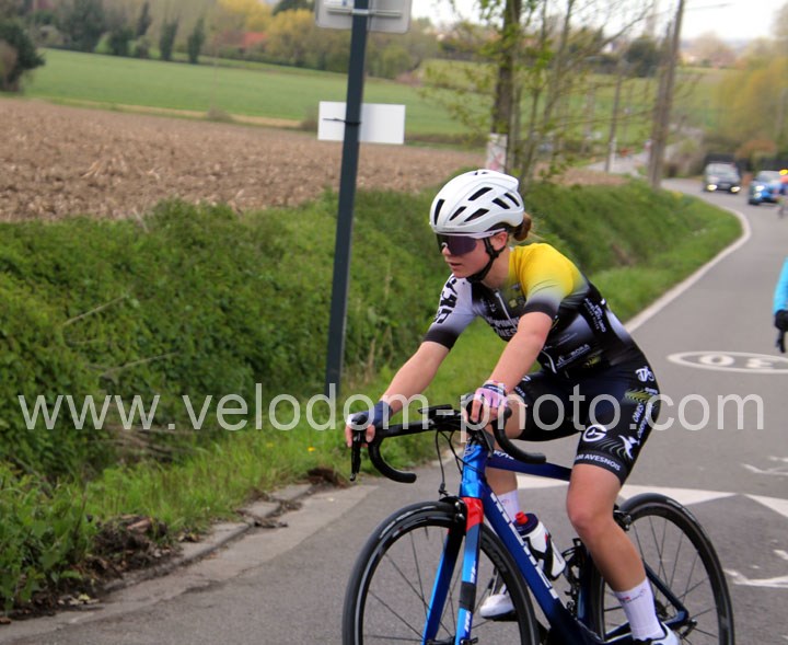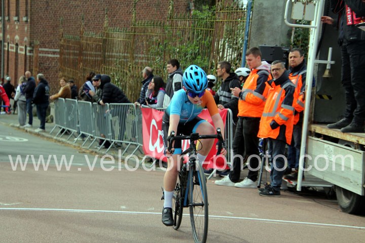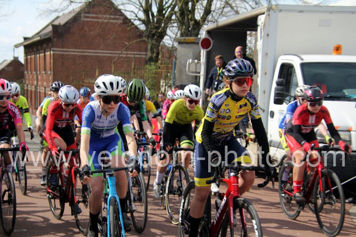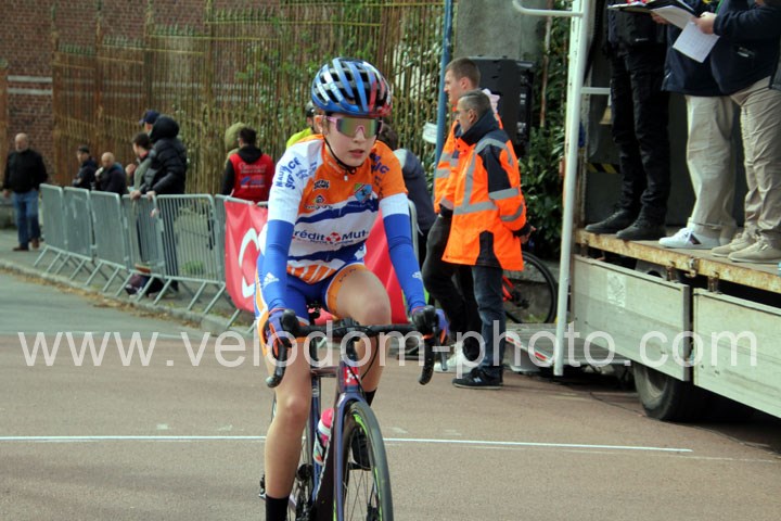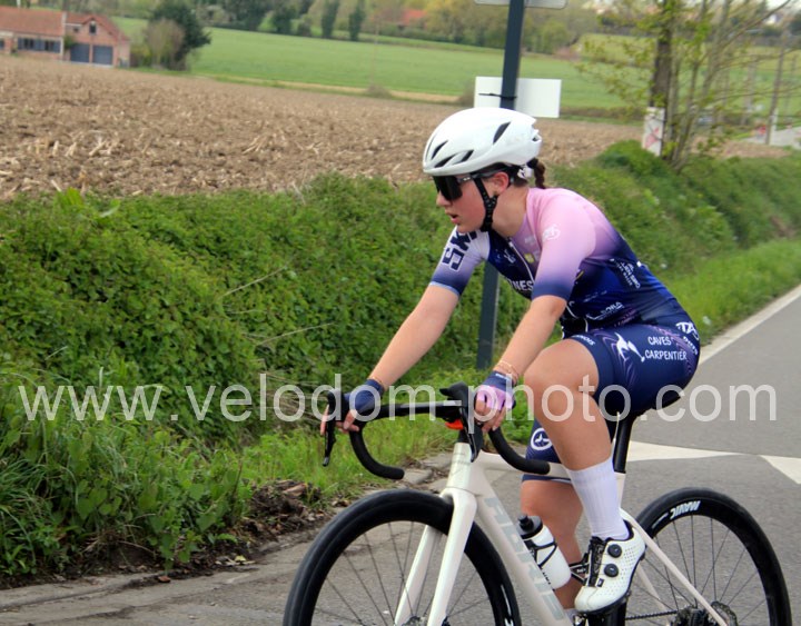 Dès le départ, l’épreuve va prendre son envol avec une belle offensive de Zelie Camboulives ( CC Armentièrois ) qui va l’a propulser seule en tête devant un groupé emmené par Lisa Usseglio  ( EC Château Thierry ) et Ernestine Vanhecke