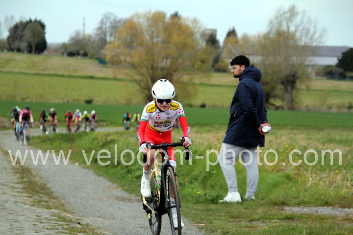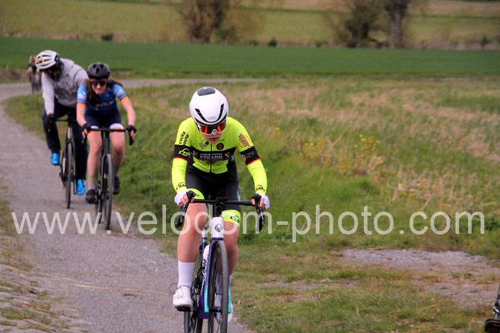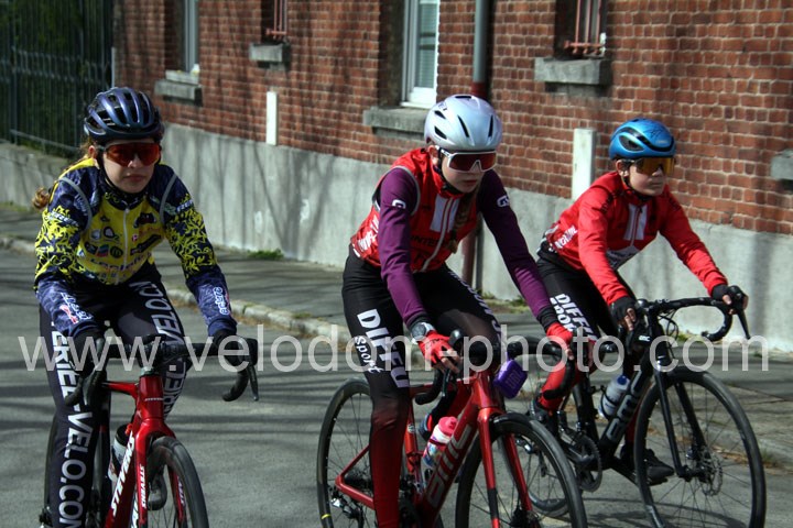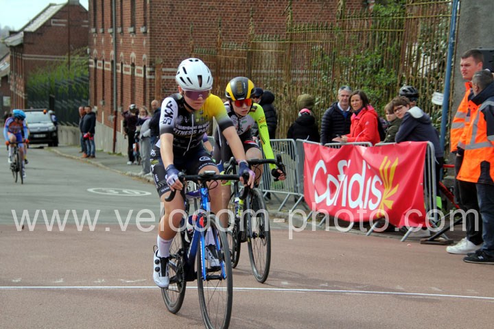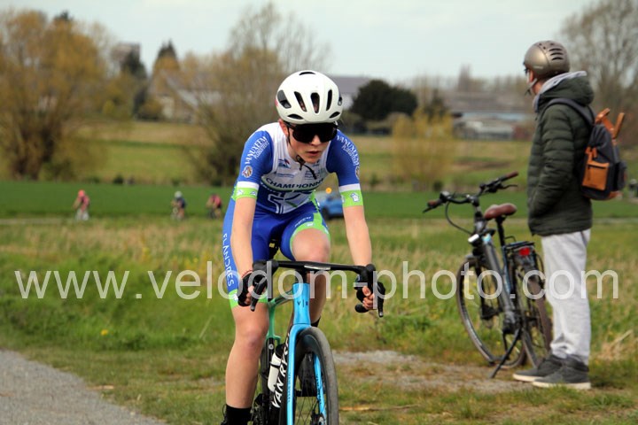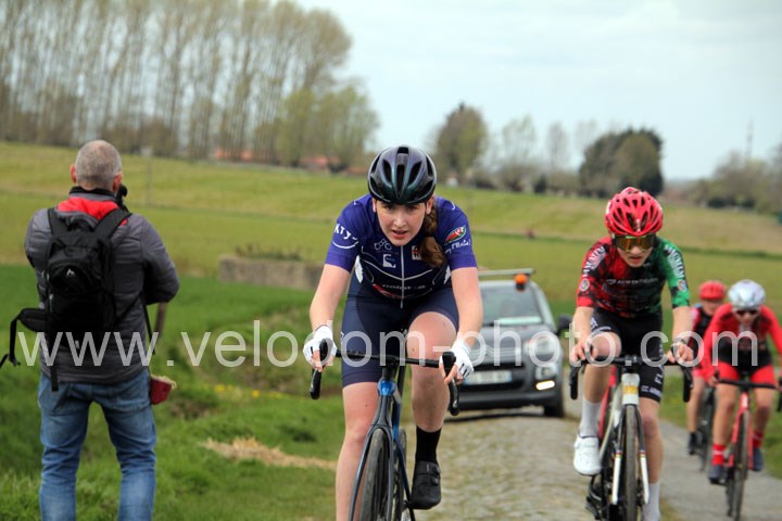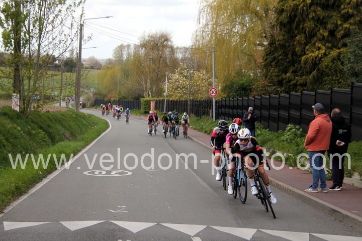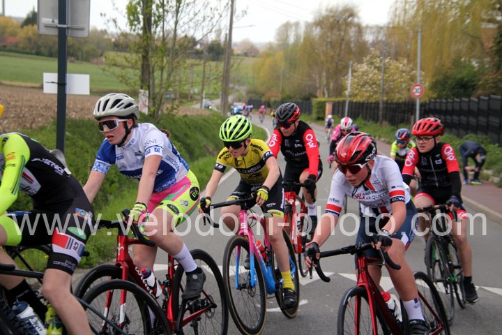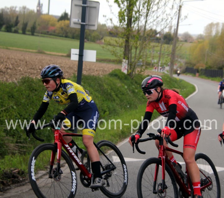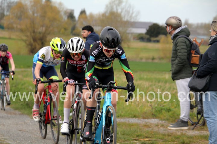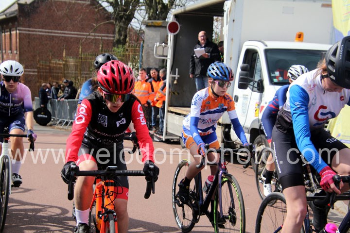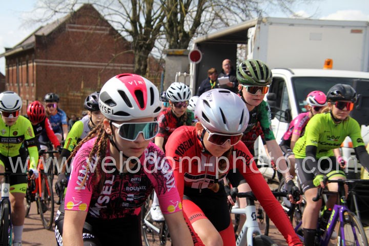 Dès le départ, l’épreuve va prendre son envol avec une belle offensive de Zelie Camboulives ( CC Armentièrois ) qui va l’a propulser seule en tête devant un groupé emmené par Lisa Usseglio  ( EC Château Thierry ) et Ernestine Vanhecke
