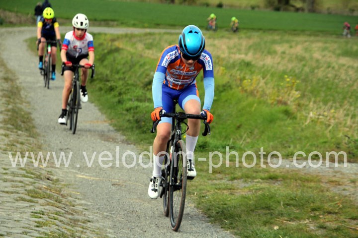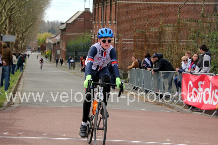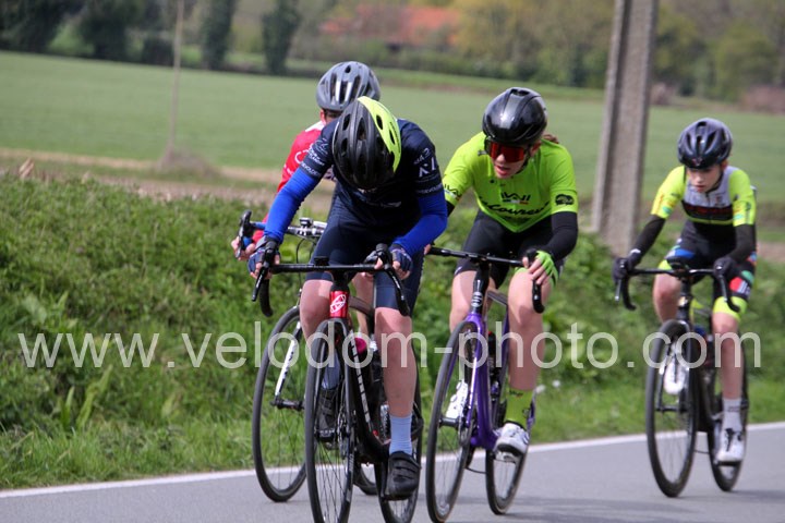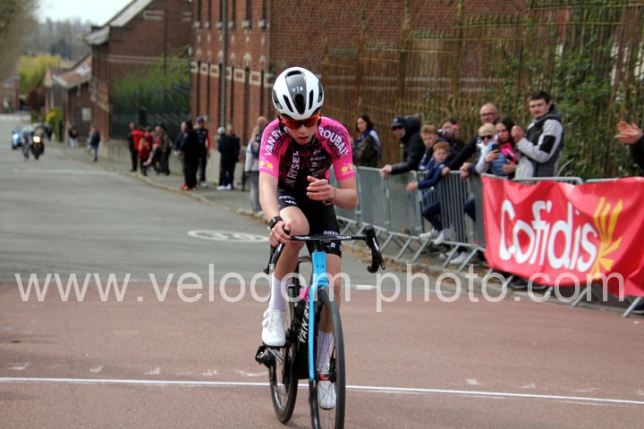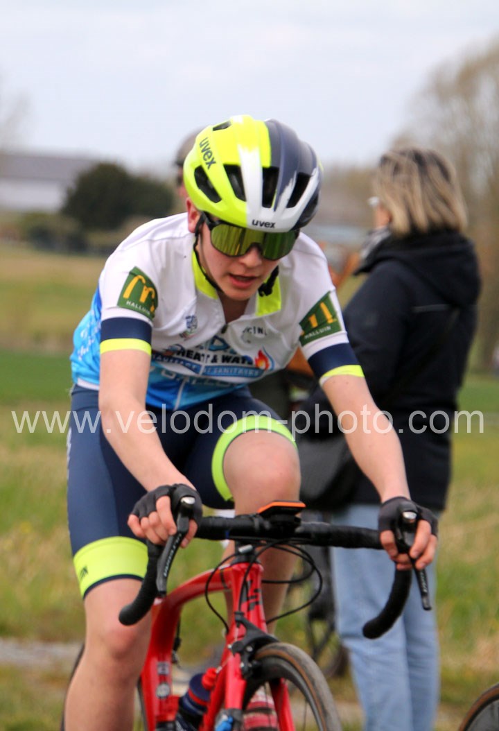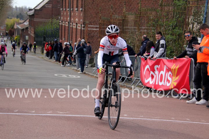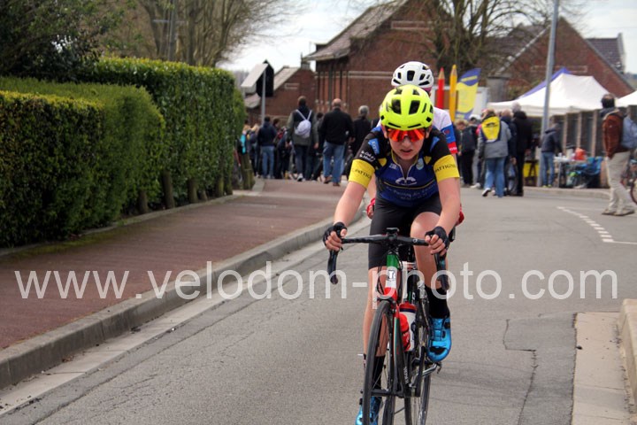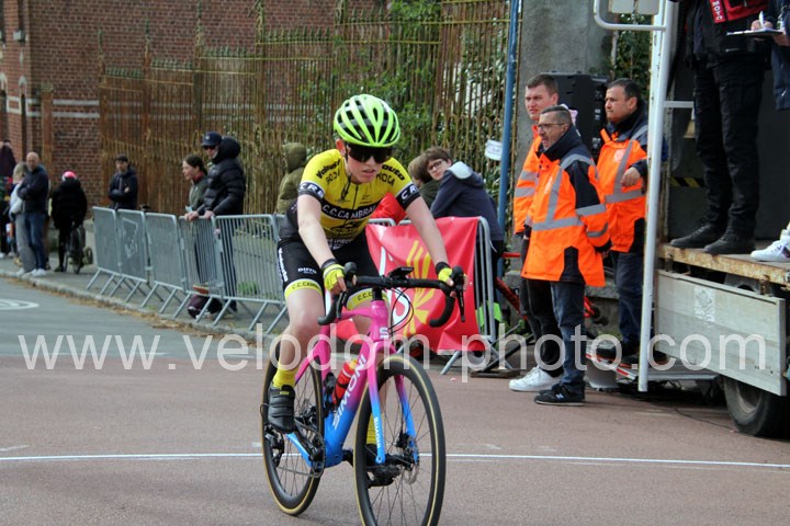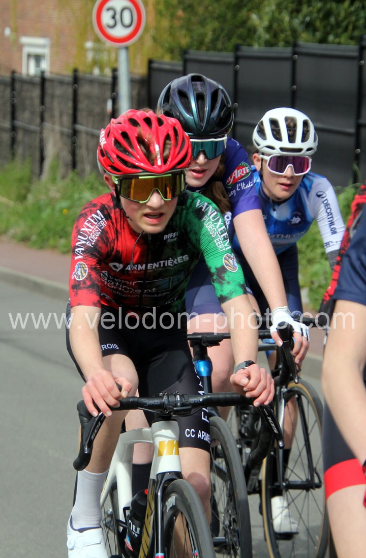Après les beaux exploits des jeunes des écoles de cyclisme. Ce sont les U15 G – U15 et U17 F qui prirent part aux festivités du jour avec la encore du beau spectacle de haute voltige. Et cette fois sur le grand circuit avec tout d’abord 7 tours de 3 Km 200 à effectuer et ses deux belles montées avant de finir en beauté avec deux boucles à effectuer avec un secteur pavé qui aura permis la sélection et qui aura sacré Noa Fontaine ( NF12 LG Consult Cycling Team )  le grand héros du jour après un beau périple en solitaire tout Zelie Camboulives ( CC Armentierois ) chez les féminines qui aura dominé de bout en bout cette belle épreuve