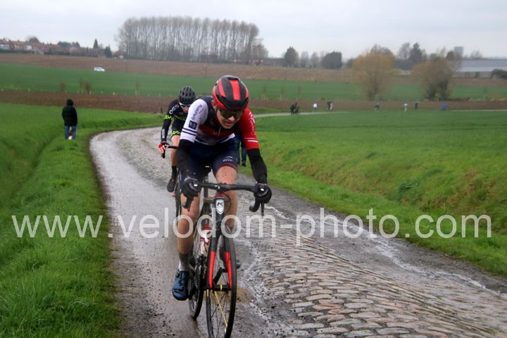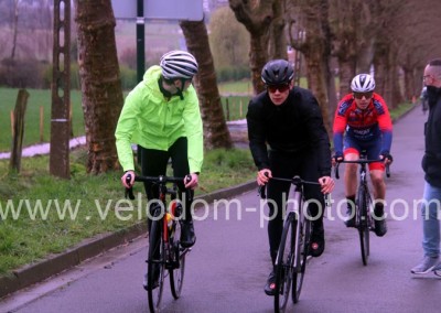 Dans le 13ème et à l’approche des secteurs pavés finaux, ils ne seront plus que 3 à se disputer la victoire : Mauro Keppens ( Isorex ), Edouard Claisse ( Wanty ) et Yasu Vervoort ( Acrog SOudal Quick Step )