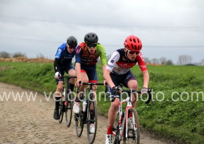 Après les magnifiques prestations des Juniors dans la 1ère épreuve du jour. Ce sont les U17 qui se mirent en quête de la victoire avec un peloton fort de 148 coureurs qui se sont livrés une belle bataille au sommet. C’est finalement un groupe 7 coureurs qui sortira le grand jeu dans le final avec de sérieux clients comme Jinze Joris ( Acrog Tormans ) ou Mauro Keppens ( Isorex ) mais aussi quelques français de valeur comme Gabriel Genter ( Eckwersheim ) Au final, c’est au sprint que la décision se fera avec le superbe finish de Mauro Keppens qui aura le dernier mot