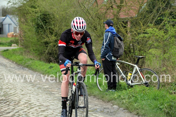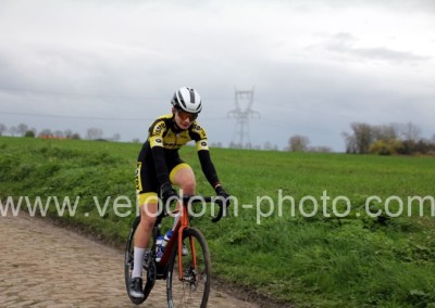 Après un 1er petit tour où le peloton restera groupé. C’est l’amorce des 1ers pavés dans le 2ème tour qui annoncera les grandes hostilités avec un peloton très étiré où l’on verra notamment Josh Johnson ( Drivetrain Academy ) très actif
