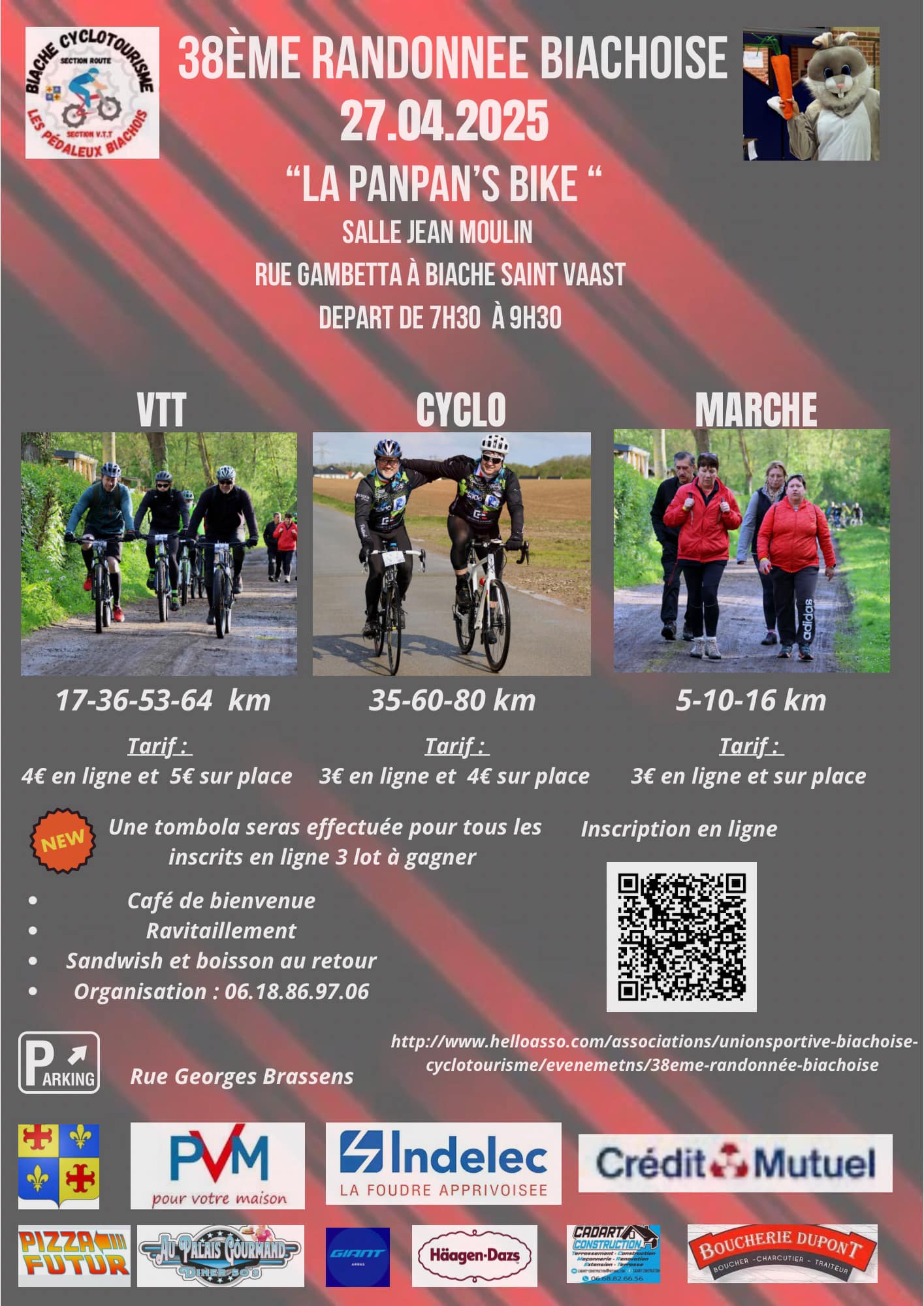 Pour s’inscrire : https://www.helloasso.com/associations/union-sportive-biachoise-cyclotourisme/evenements/38eme-randonnee-biachoise