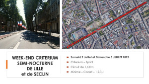 Après Seclin, le coureurs se retrouveront le lendemain à Lille pour un critérium en Semi Nocturne du côté du Boulevard de la liberté. Un circuit de 1 Km 600 destiné encore aux Minimes, Cadets, 2èmes, 3èmes catégories et Juniors. Sous forme de critérium ( sprint ).